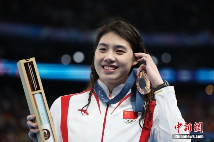 當地時間8月1日,在巴黎奧運會女子200米蝶泳決賽中,中國選手張雨霏以2分05秒09的成績獲得銅牌。中新社記者 富田 攝