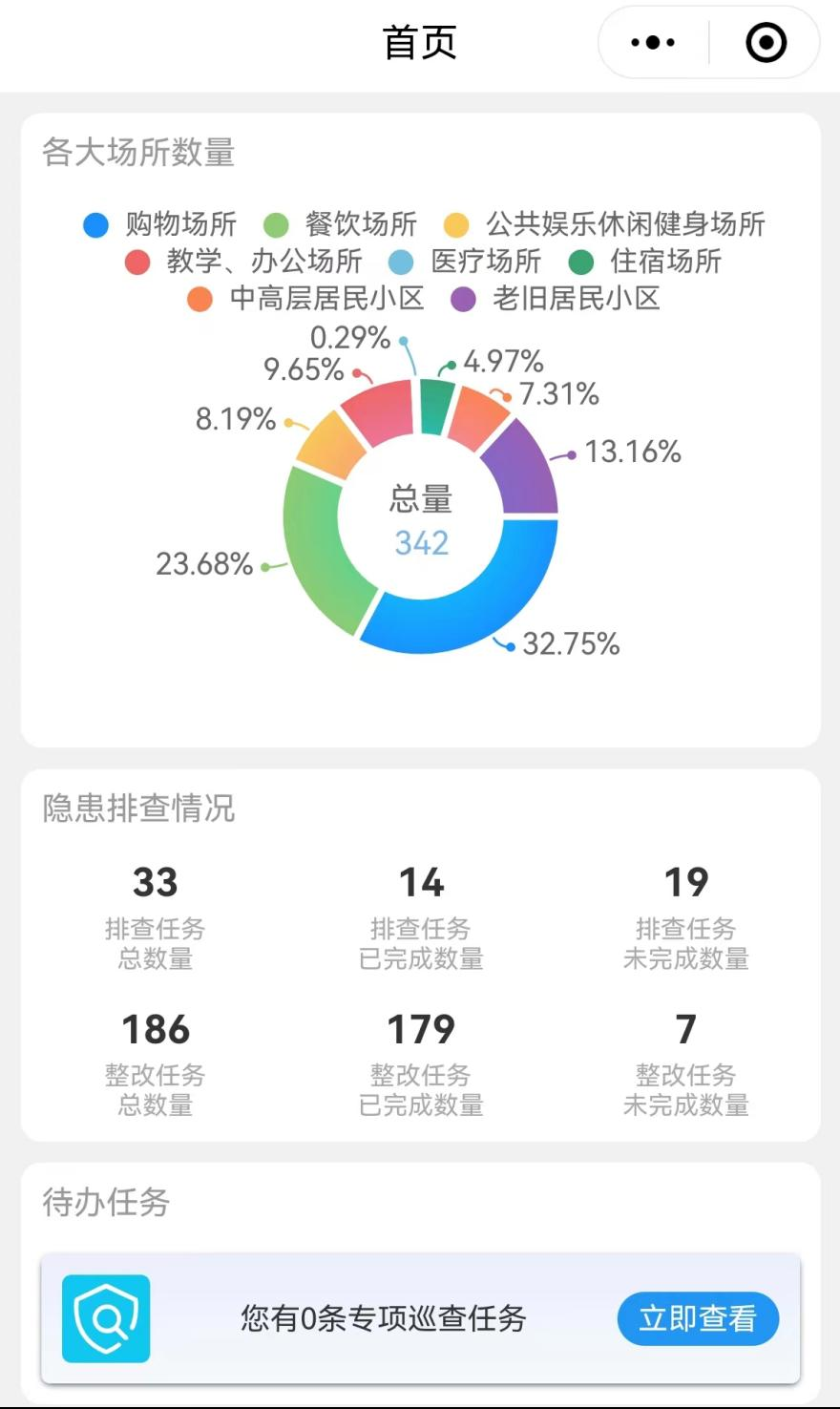 千家街社區依托智慧社區治安消防聯動服務平臺,聯動“千家護衛”志愿服務隊,形成“大數據+網格化+鐵腳板”綜合治理新模式。志愿服務隊成員走街串巷、巡查隱患,發揮“前哨”“探頭”作用。通過平臺后端小程序可隨時上報隱患情況,平臺利用AI識別處理功能,一鍵識別隱患類型,并提供專業化處理意見,將風險隱患消除在萌芽狀態。針對志愿者無法解決的難點問題,通過平臺派單至網格員,練就網格員腿勤、嘴勤、手勤,及時解決安全隱患問題,用“鐵腳板”走出群眾“安全路”,形成“居民派單、網格員接單、社區部門銷號”的共治模式,實現數字化與網格化的耦合。截至目前,服務平臺共上報隱患183條,消除隱患179條,有效推動智慧安全小區建設。