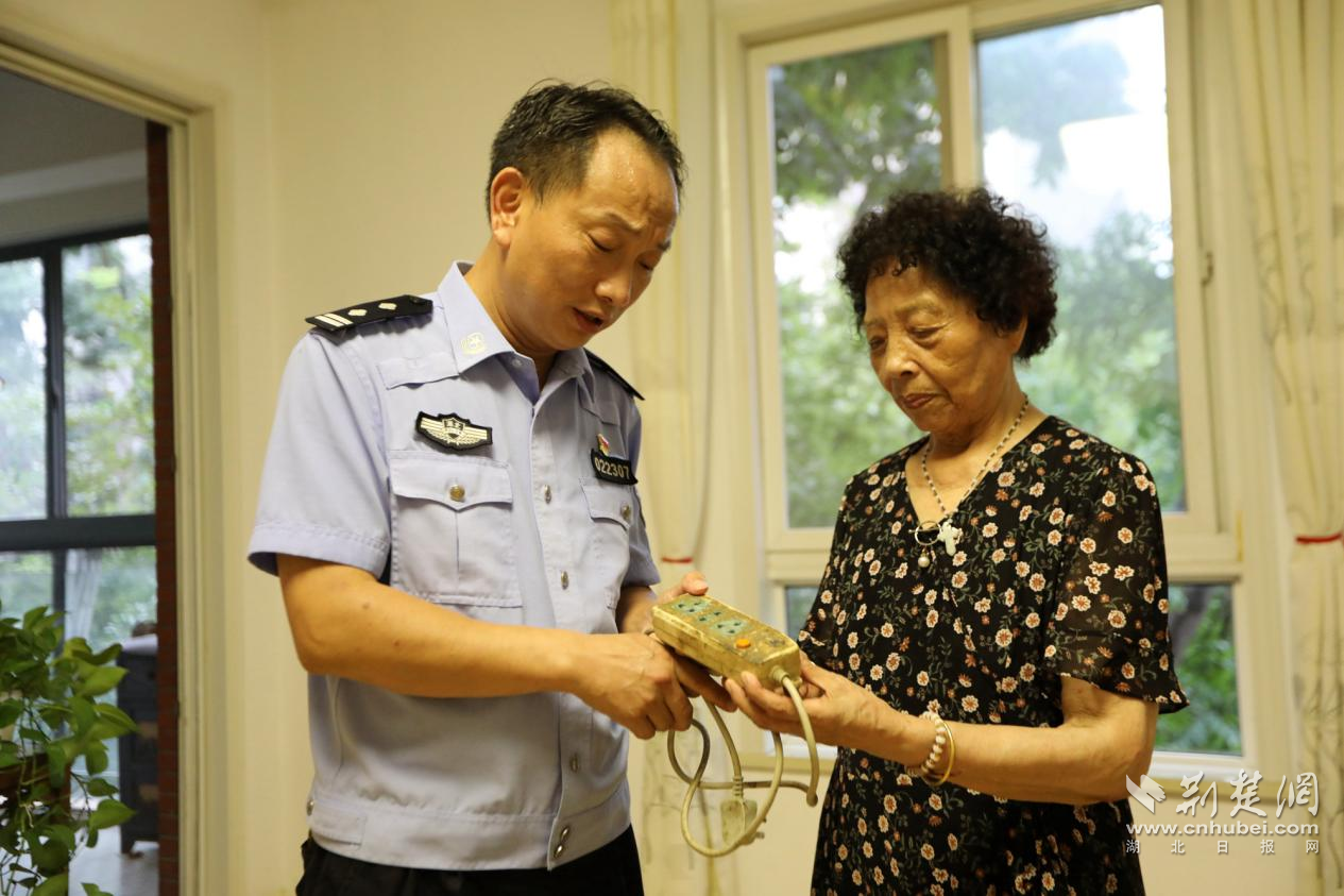 “王姐,您看這排插都舊成這樣了,多危險啊,我給您換個新的,用電安全可馬虎不得。”7月31日,張文昌帶著自己購買的嶄新排插和一份心意滿滿的西瓜,再次踏入了王奶奶的家門。上次走訪時,他細心地發現老人家中使用的排插已嚴重老化,便暗暗記在了心上,決定親自為老人解決這一安全隱患。入伏以來,持續高溫,張文昌將用電安全宣防和小區消防檢查納入近期工作重點,他和他的社區警務團隊在高溫下堅守,頂著烈日,穿梭于社區的每一個角落。