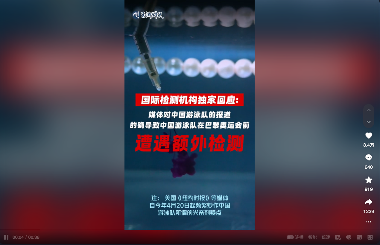國際檢測機構稱美媒報道導致中國游泳隊額外檢測
