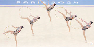 圖①:中國隊在藝術(shù)體操集體全能決賽中。 本報記者 陶相安攝 |