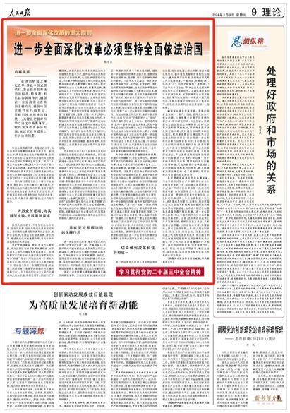 《決定》深刻總結改革開放以來特別是新時代全面深化改革的寶貴經驗,把“堅持全面依法治國”作為進一步全面深化改革的重大原則之一。在法治軌道上深化改革、推進中國式現代化,重在更好發揮法治固根本、穩預期、利長遠的保障作用,確保進一步全面深化改革的正確方向,確保中國式現代化行穩致遠。要做到改革和法治相統一,關鍵是把握好科學立法這個重要環節,做到重大改革于法有據、及時把改革成果上升為法律制度。【全文】