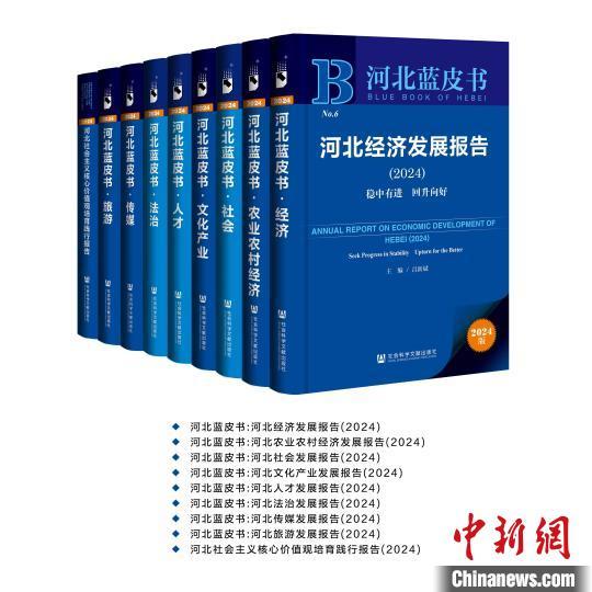 該系列叢書共9冊,分別為《河北經濟發展報告(2024)》《河北農業農村經濟發展報告(2024)》《河北社會發展報告(2024)》《河北文化產業發展報告(2024)》《河北人才發展報告(2024)》《河北法治發展報告(2024)》《河北傳媒發展報告(2024)》《河北旅游發展報告(2024)》《河北社會主義核心價值觀培育踐行報告(2024)》。