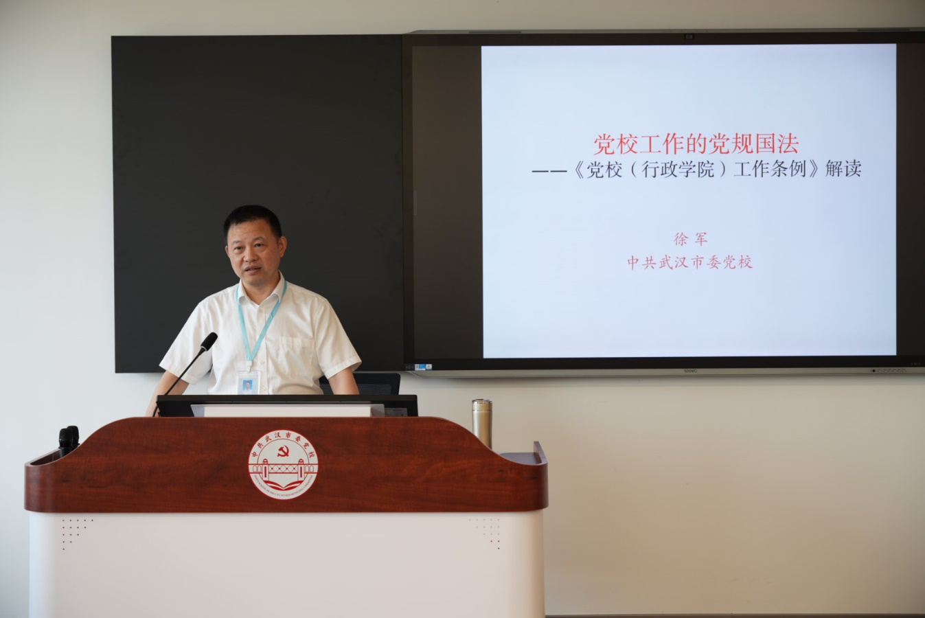 徐軍以黨校工作的“黨規國法”為主題講授“開班第一課”,從“為什么、是什么、怎么辦”三個方面深刻闡述了《中國共產黨黨校(行政學院)工作條例》的重要意義、基本內容和落實舉措。他強調,《條例》明確了黨校的指導思想、職責定位、遵循原則、基本任務等要求,是黨校各項工作的根本遵循。他通過生動鮮活的工作事例、違紀違法的典型案例,教育學員要系好進入黨校的第一顆扣子,明規矩、守底線,勤思考、多領悟,強基礎、促發展,為實現”一流校園、一流隊伍、一流成果“不懈奮斗,與黨校共同成長。