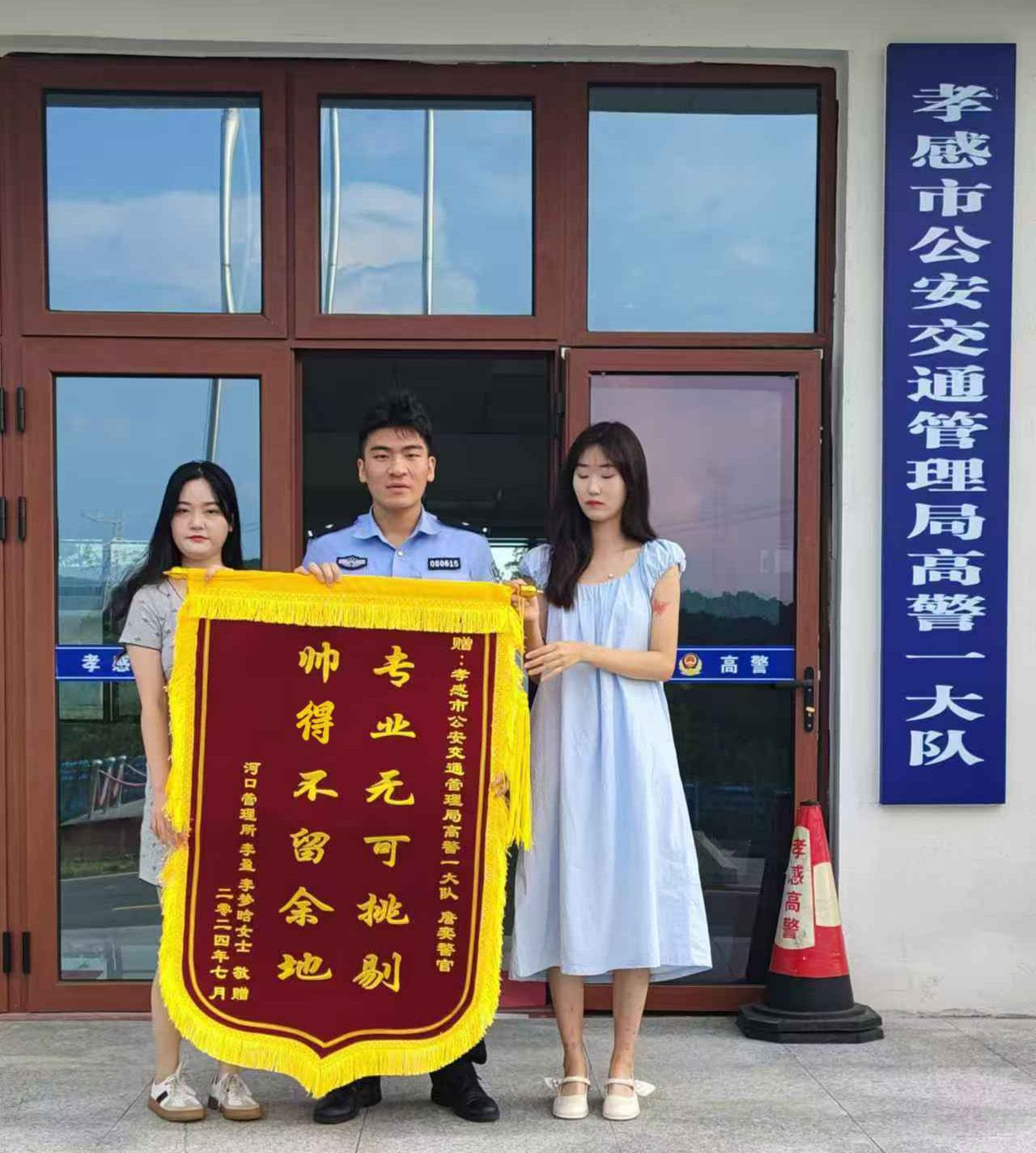 該高速公路運營公司河口管理所的執(zhí)勤人員李女士對民警的高效處置行為連連稱贊,并于近日將一面印有“專業(yè)無可挑剔,帥得不留余地”的錦旗送到詹奕警官手中,以示感謝。