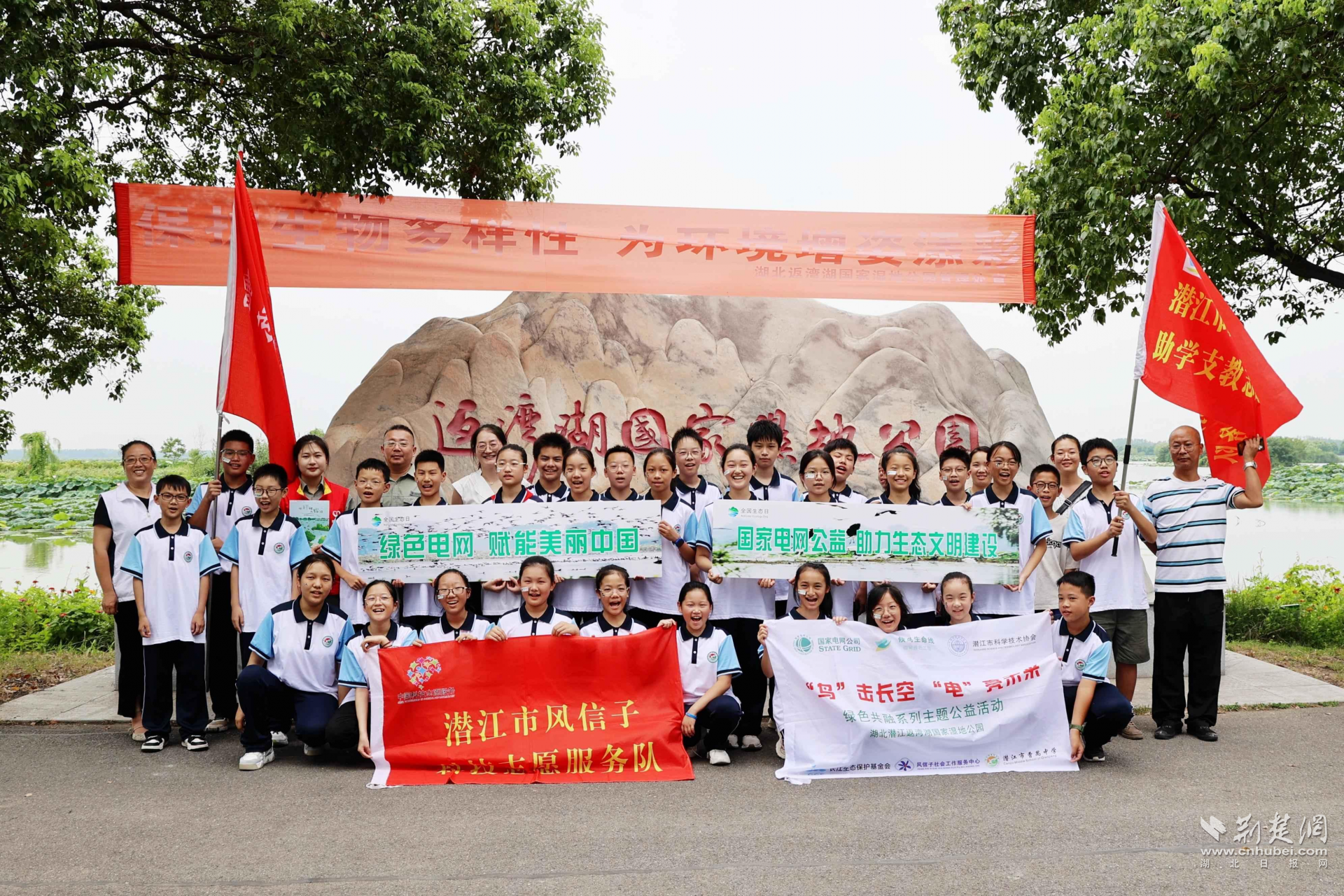 近年來,潛江市高度重視返灣湖濕地生態(tài)環(huán)境保護工作,持續(xù)加大生態(tài)文明建設力度,濕地環(huán)境逐步改善。2022年1月,國網(wǎng)潛江市供電公司與湖北長江生態(tài)保護基金會合作,在返灣湖濕地公園開展“護線愛鳥行動——候鳥生命線”項目。以《化桿擱為綠泊》為主題,編寫科普讀本宣傳護線愛鳥的知識。將互動電子屏嵌入到公園的戶外宣教陣地中,組織“鄂電紅馬甲”通過視頻播放和案例宣講,讓孩子們了解濕地保護的重要性。