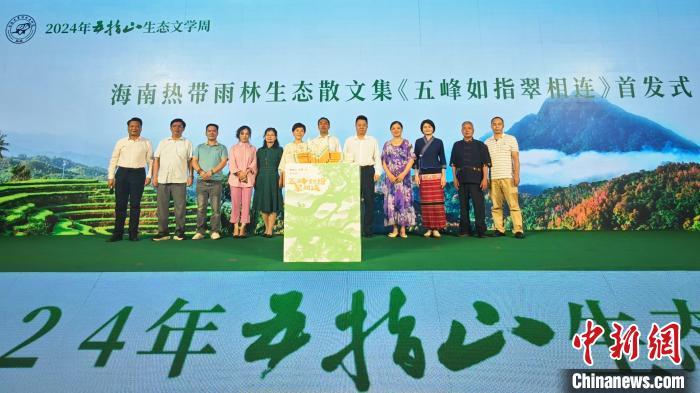 中新網(wǎng)海南五指山8月16日電 (張?jiān)潞?今年8月15日是中國(guó)第二個(gè)全國(guó)生態(tài)日,當(dāng)天,海南熱帶雨林生態(tài)散文集《五峰如指翠相連》在海南省五指山市首發(fā)。