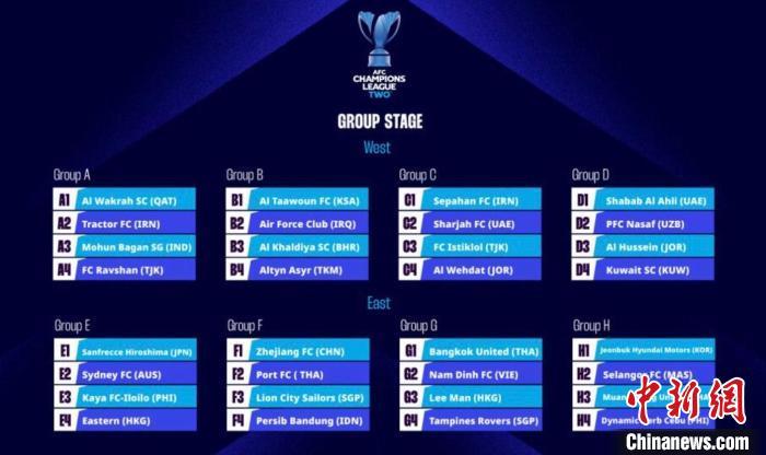中新網(wǎng)杭州8月16日電(郭天奇)16日,2024—2025賽季亞足聯(lián)冠軍聯(lián)賽2級(jí)聯(lián)賽(下稱(chēng)亞冠二級(jí)聯(lián)賽)小組賽抽簽結(jié)果揭曉。據(jù)亞洲足球聯(lián)合會(huì)(下稱(chēng)亞足聯(lián))官網(wǎng)消息,位于東亞區(qū)第一檔的中超“獨(dú)苗”浙江隊(duì)與泰港(泰國(guó))、獅城水手(新加坡)、萬(wàn)隆泊西布(印度尼西亞)同處F組。