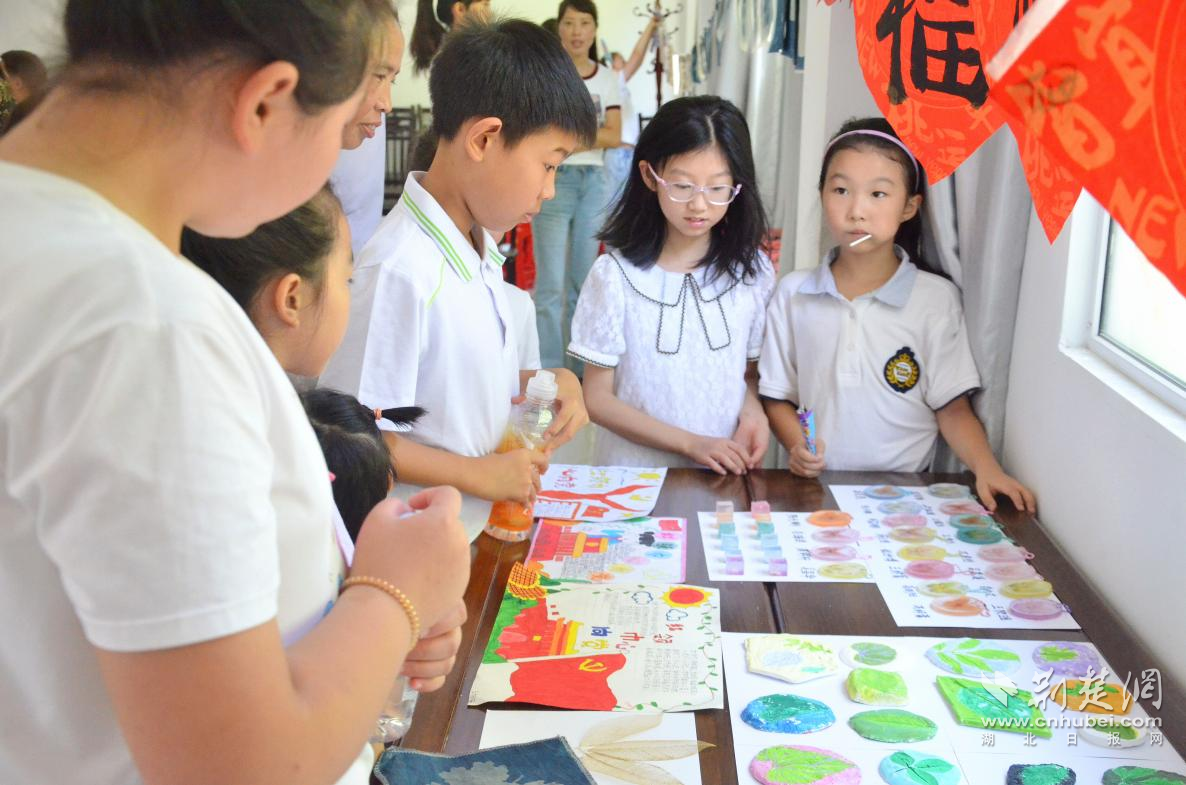 表演結束后,家長們來到作品展處觀看孩子們課上的學習成果。