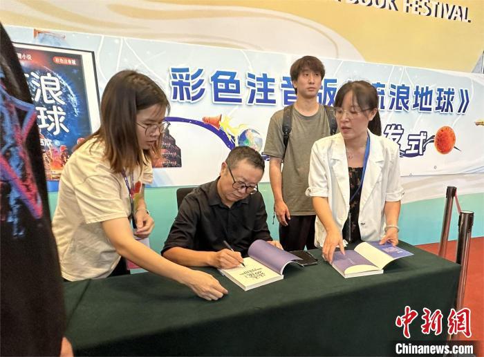 中新社廣州8月17日電 (記者 程景偉)中國著名科幻作家劉慈欣17日攜首次出版的彩色注音版《流浪地球》亮相2024南國書香節(jié),受到大批讀者的追捧。