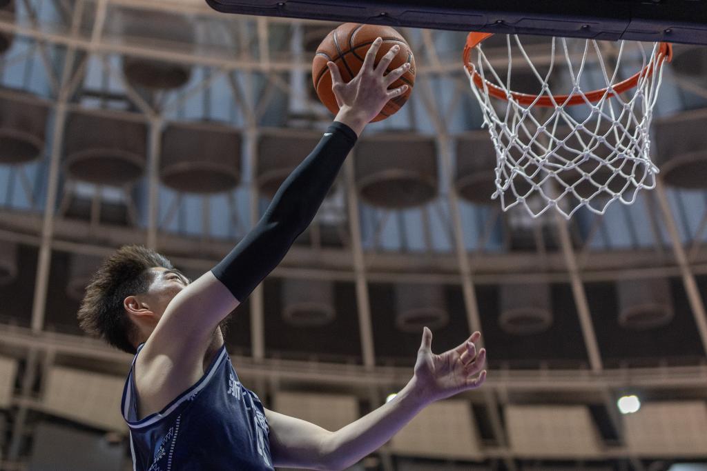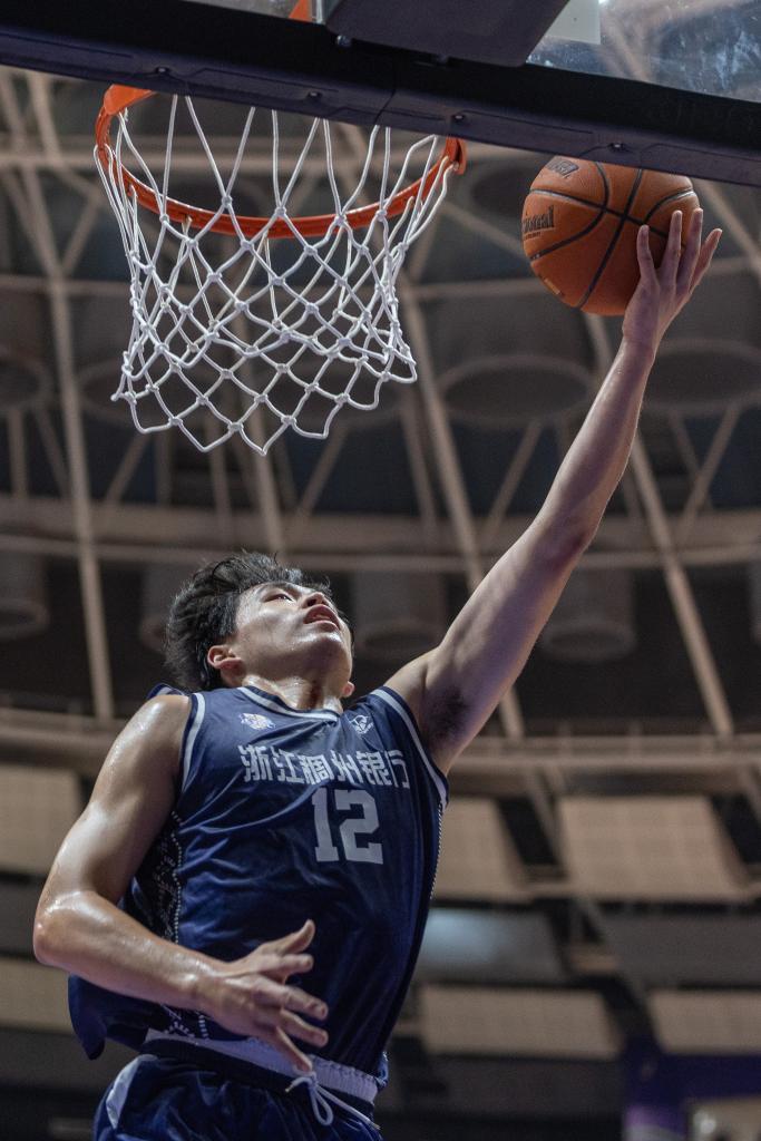 8月18日,浙江稠州銀行隊球員張洪碩在比賽中上籃。新華社記者 黃偉 攝