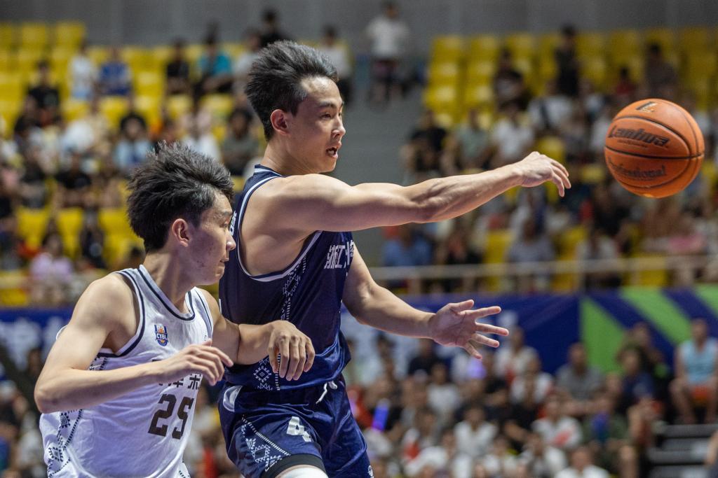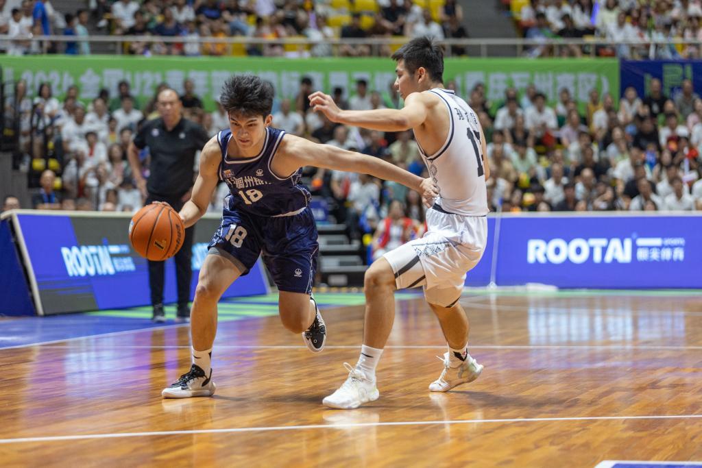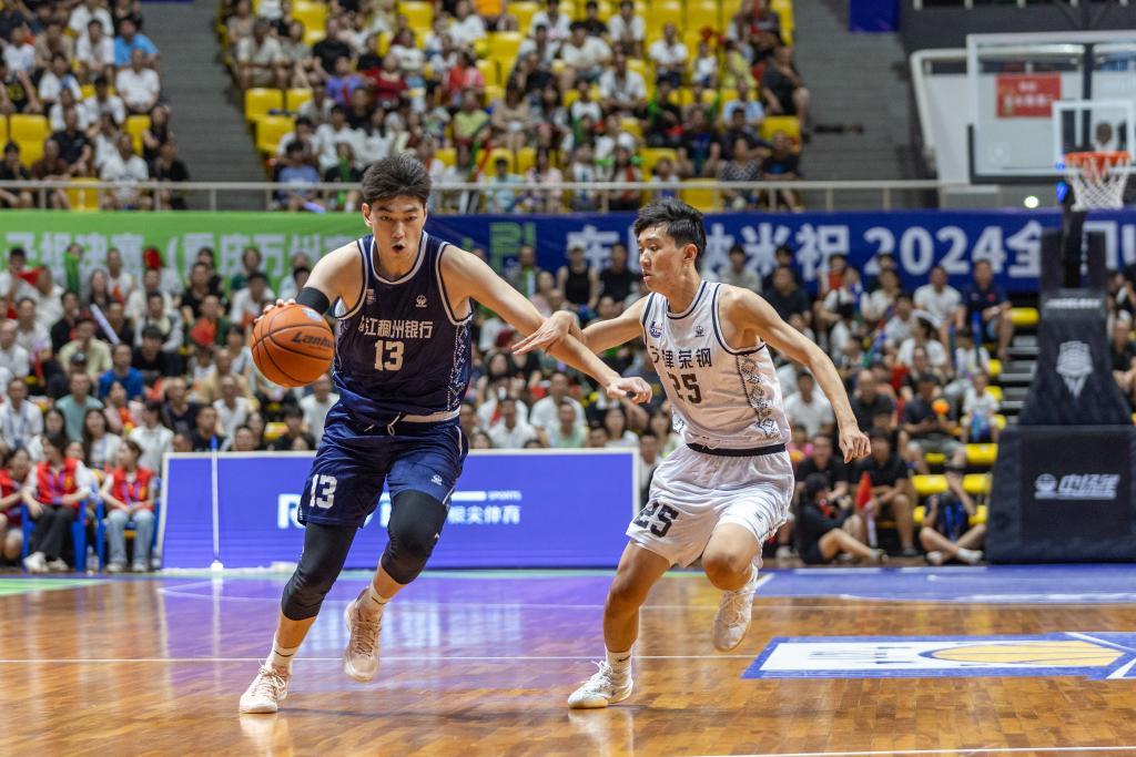 8月18日,浙江稠州銀行隊球員張洪碩(左)在比賽中帶球突破。新華社記者 黃偉 攝