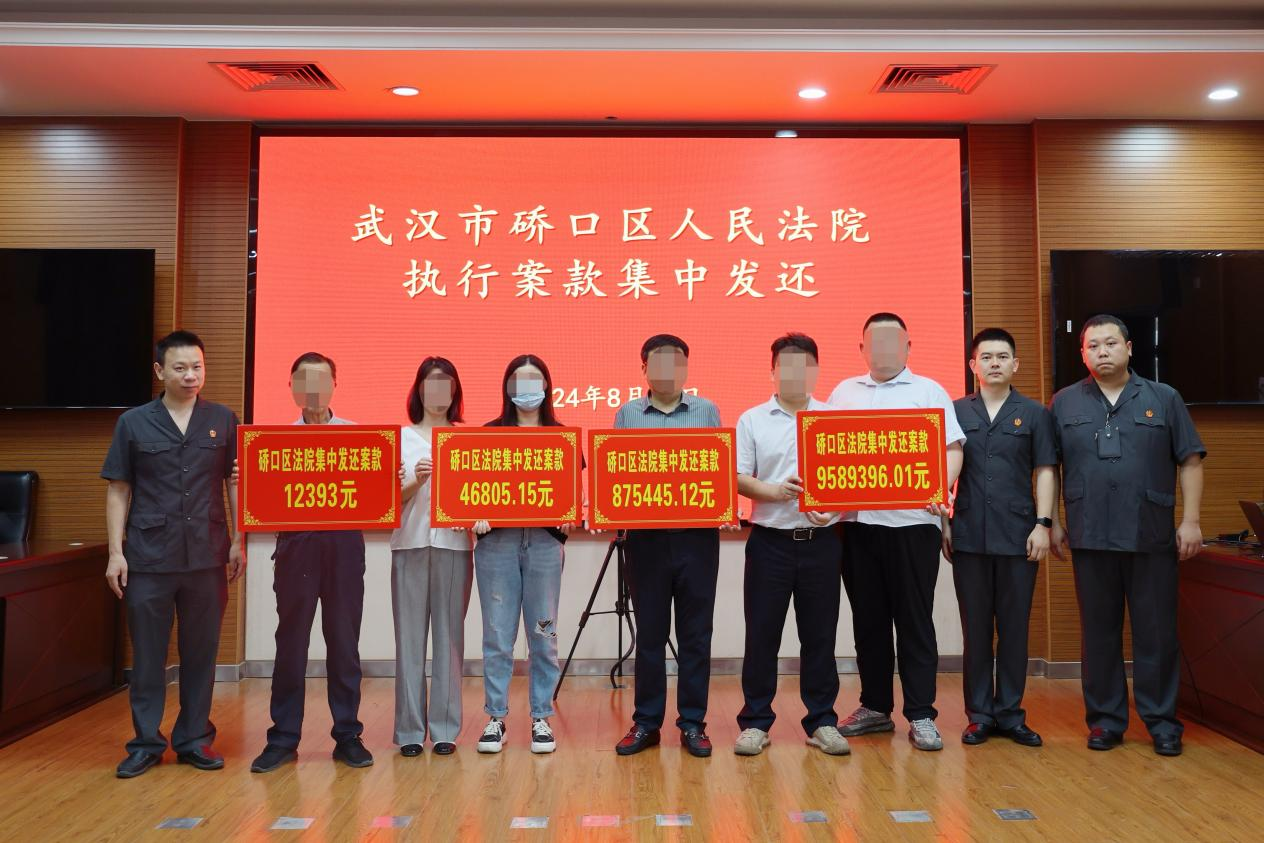今年以來,硚口法院積極運用財產處置新模式,升級打造專業財產處置團隊,利用“一體化”優勢加快被執行人財產變現,有效幫助申請執行人收回款項。多起案件的執行案款通過財產集中處置執行到位,于當日統一發放。