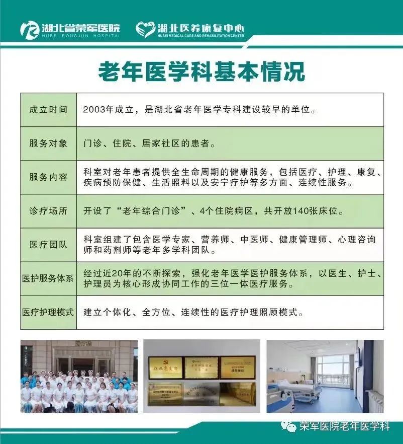 據悉,湖北省榮軍醫院老年醫學科自2003年建立以來,致力于滿足老年患者的全面醫療需求。通過“五全服務”模式提供個性化、連續性的醫護服務。