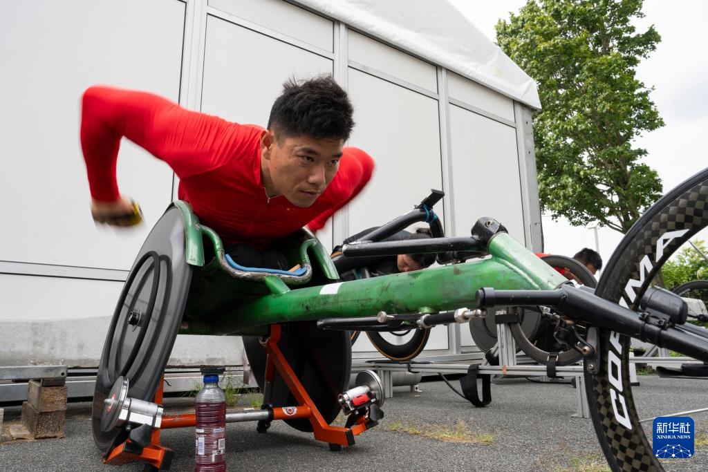 當日,巴黎殘奧會中國體育代表團田徑運動員進行賽前訓練,備戰即將開幕的2024年巴黎殘奧會。