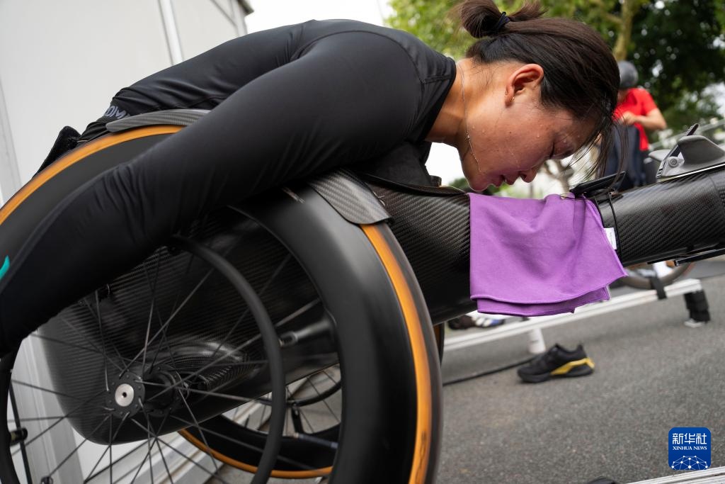 8月23日,國家田徑隊輪椅競速組運動員田雅娟在訓練中。新華社記者 才揚 攝