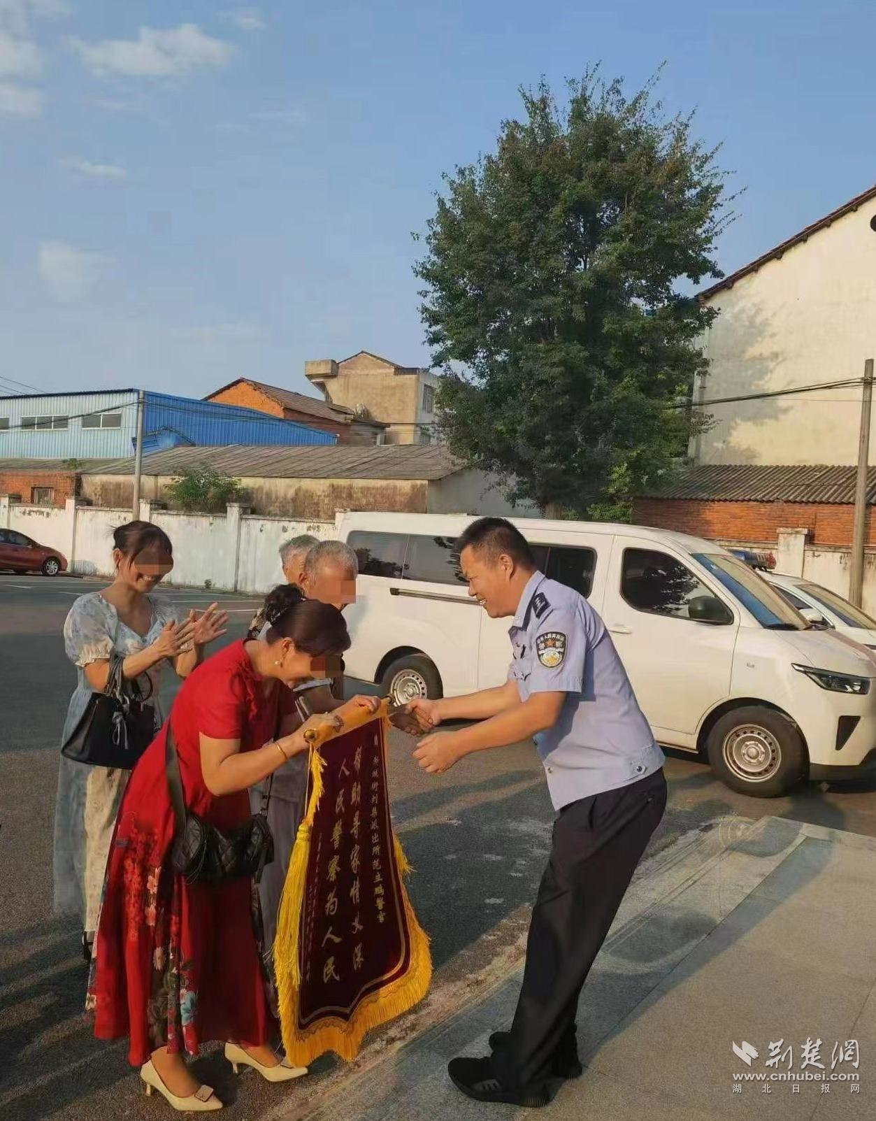 陳某生、饒某珍夫婦為范立鵬所長及全體民警送上錦旗。通訊員供圖