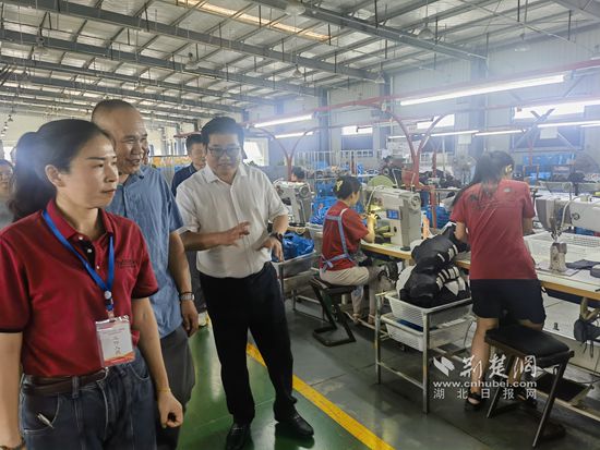 陽新縣副縣長廖洋波(右一)深入車間調研。 記者 田城/攝