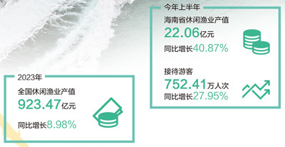 近年來,海南省積極引導漁民“往岸上走、往深海走、往休閑漁業走”,推動傳統漁業轉型升級。2023年,海南省休閑漁業產值增長90%;今年上半年,產值22.06億元、接待游客752.41萬人次,同比分別增長40.87%、27.95%。