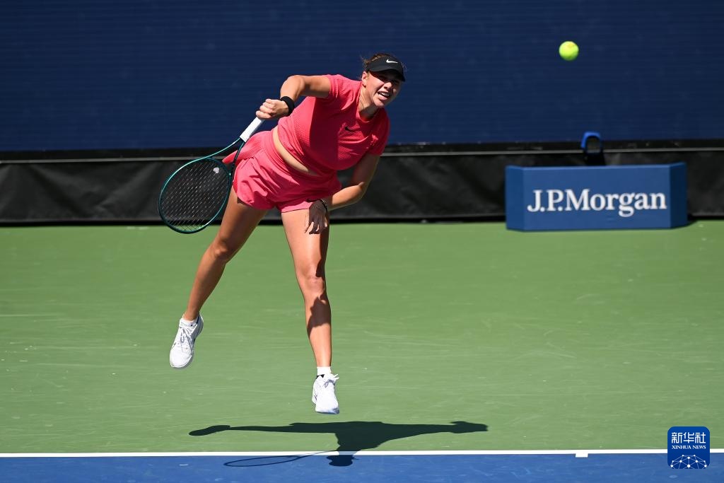 8月26日,阿尼西莫娃在比賽中發球。新華社記者 李睿 攝