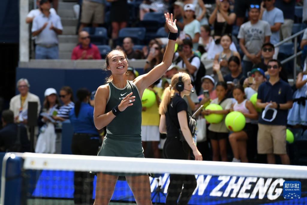 當日,在2024美國網球公開賽女子單打首輪比賽中,中國選手鄭欽文2比1戰勝美國選手阿尼西莫娃,晉級第二輪。