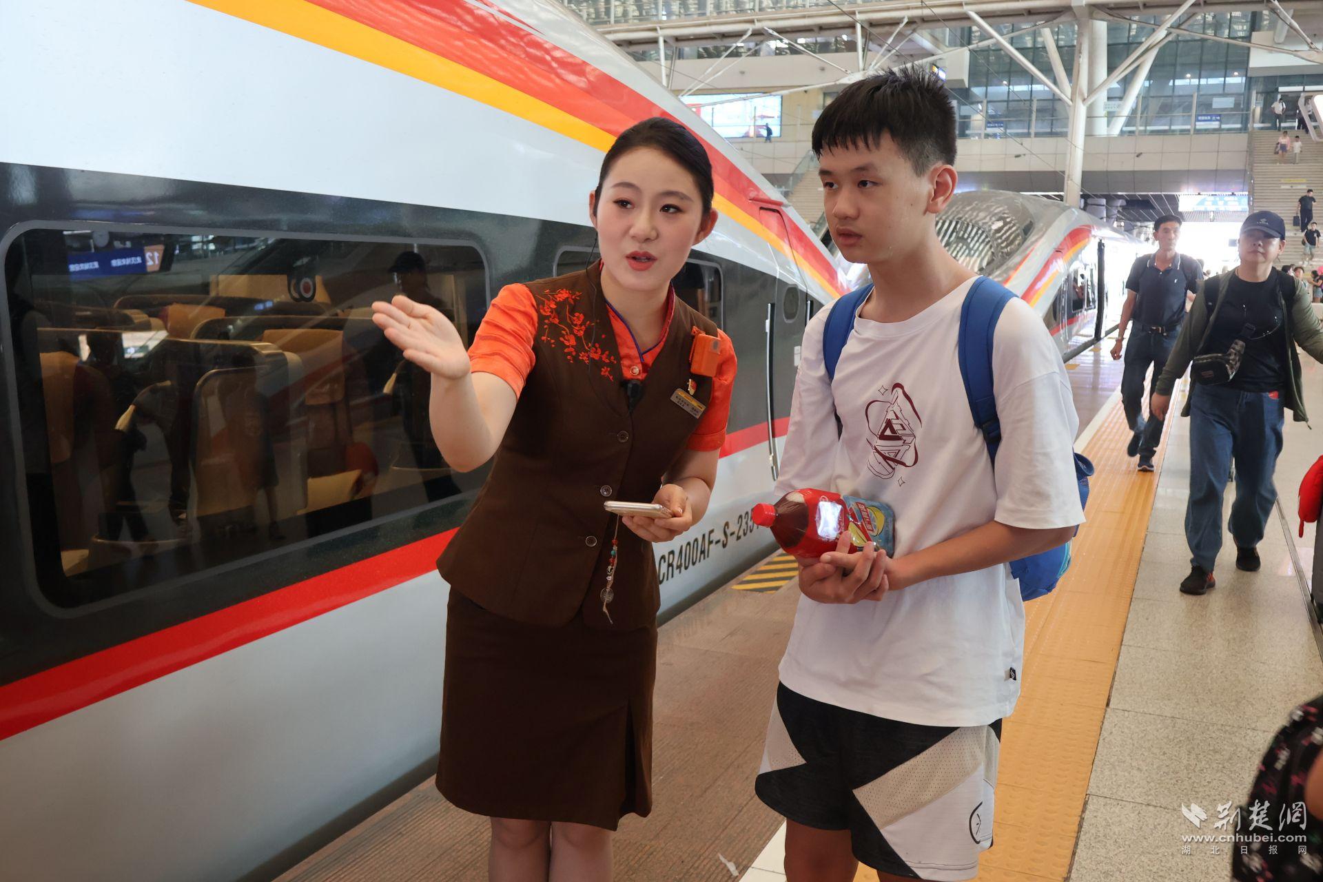 荊楚網(湖北日報網)訊(通訊員 周赟玥)“電子錄取通知書可以作憑證,請收好您的證件”。8月27日,中國鐵路武漢局集團有限公司高鐵列車員趙雅軒為武漢理工大學新生小秦快速核驗學生票。