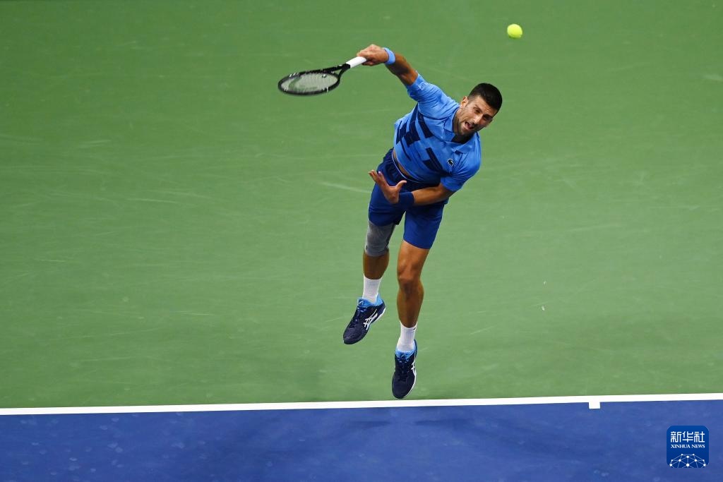 8月26日,焦科維奇在比賽中發球。新華社記者 李睿 攝