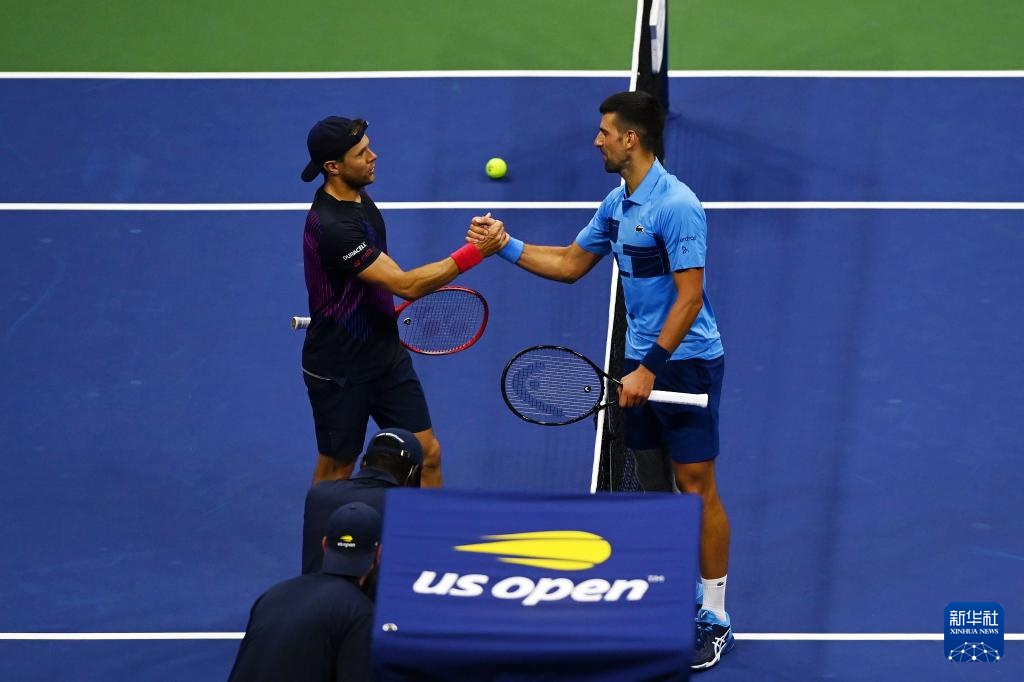 8月26日,焦科維奇(右)與阿爾博特在比賽后握手致意。新華社記者 李睿 攝