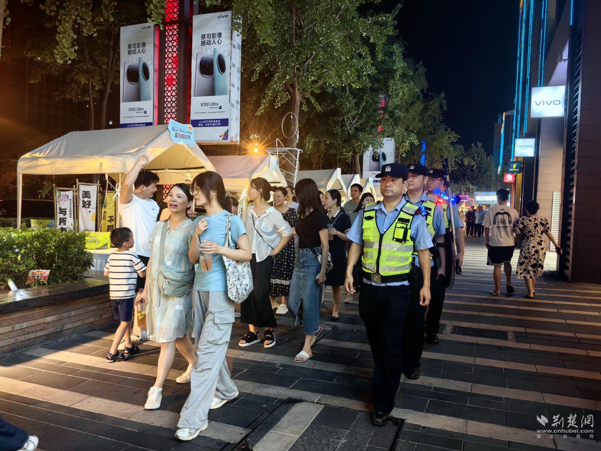 荊楚網(湖北日報網)訊(通訊員 武龔瑄)入夏以來,豐富多彩的夜間消費場景,讓熱辣滾燙的武漢“夜經濟”持續升溫。為全力守護這份“人間煙火氣”,武漢警方把保護人民群眾生命財產安全擺在重要位置,依托夏季治安打擊整治行動,主動靠前,持續營造安全、穩定、有序的社會治安環境。
