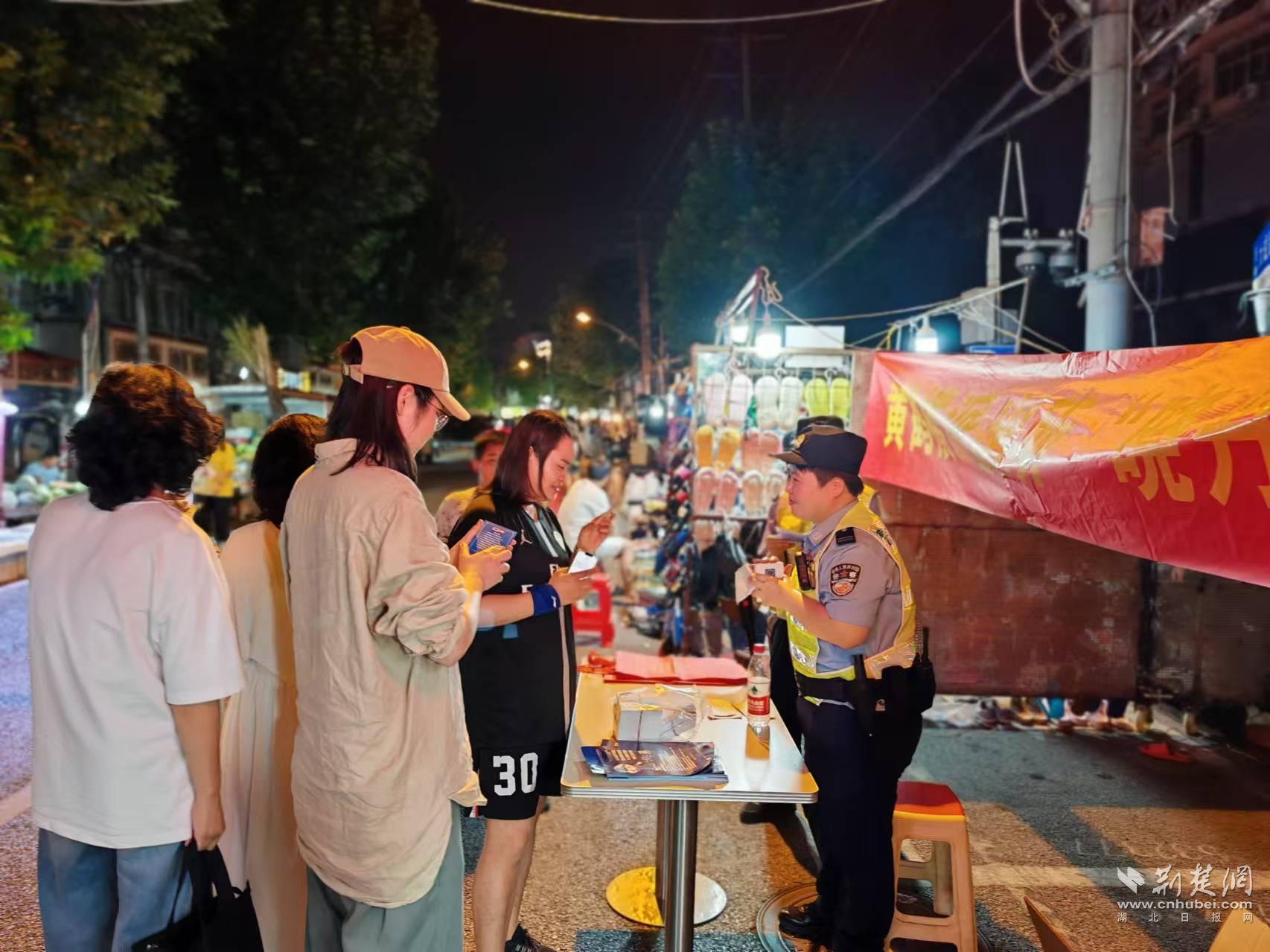 武昌區公安分局黃鶴樓街派出所民警在大成路夜市開展安全知識宣傳。通訊員供圖