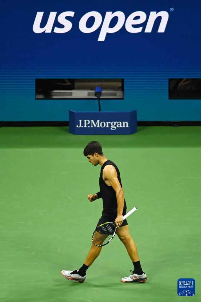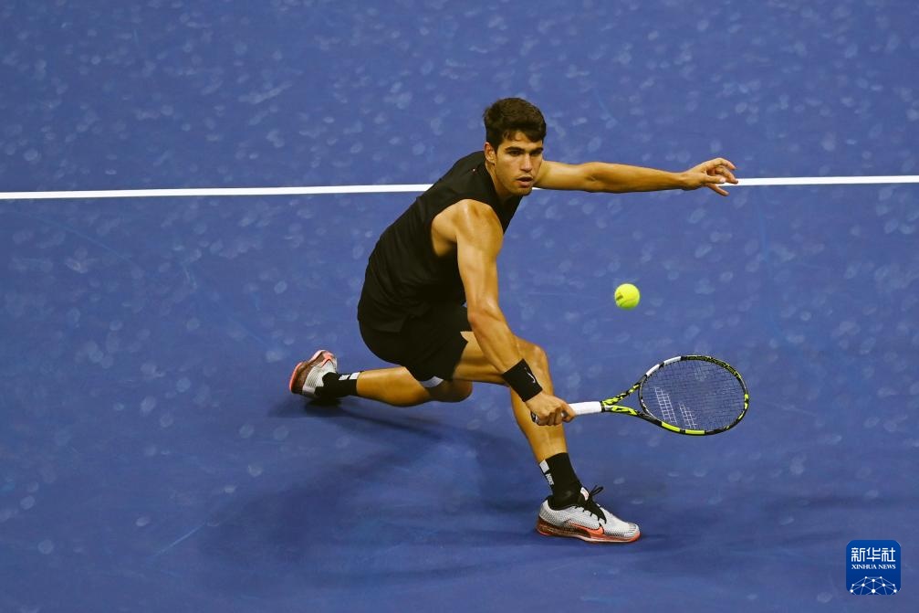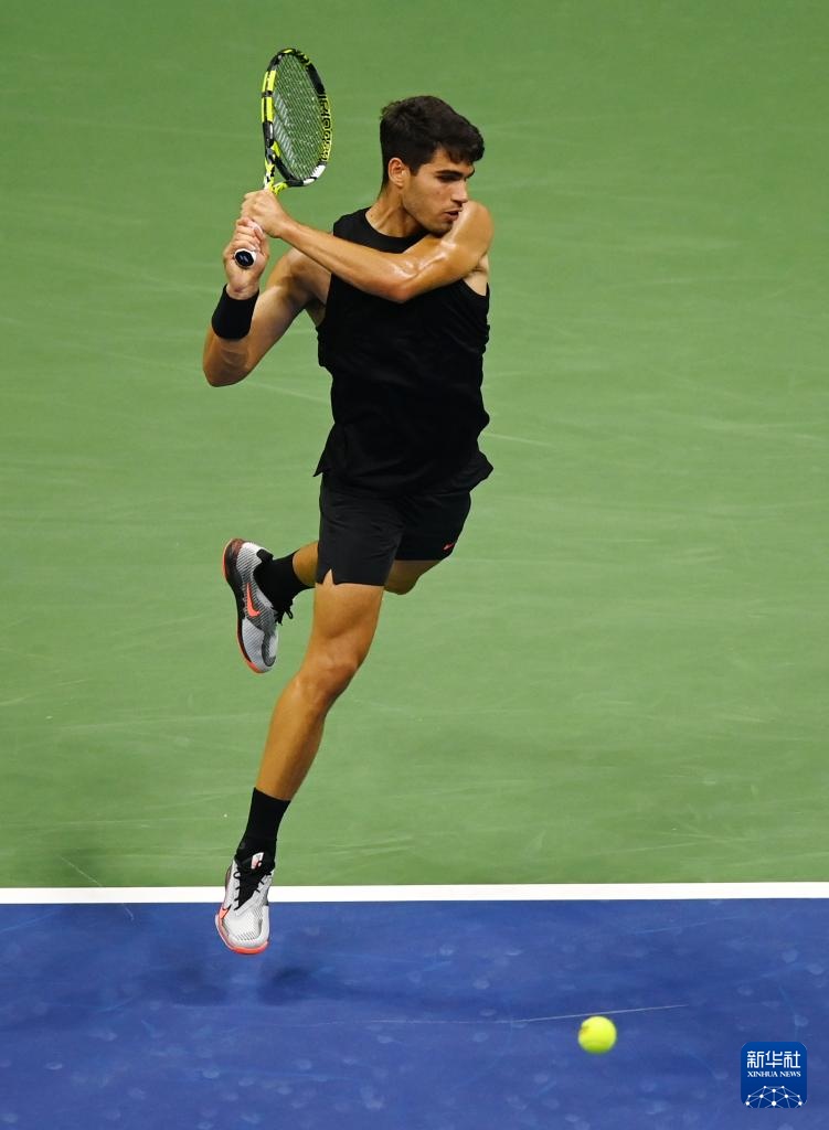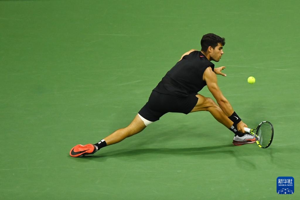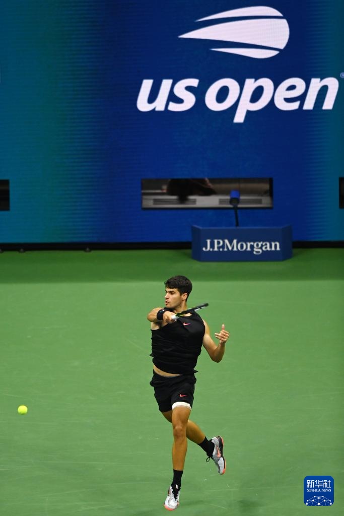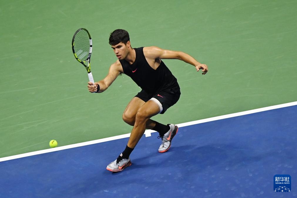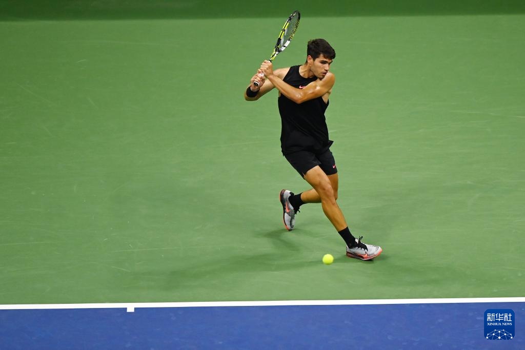 8月27日,阿爾卡拉斯在比賽中回球。新華社記者 李睿 攝