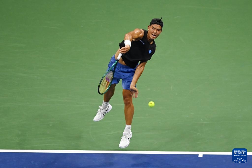 8月27日,阿爾卡拉斯在比賽中發球。新華社記者 李睿 攝