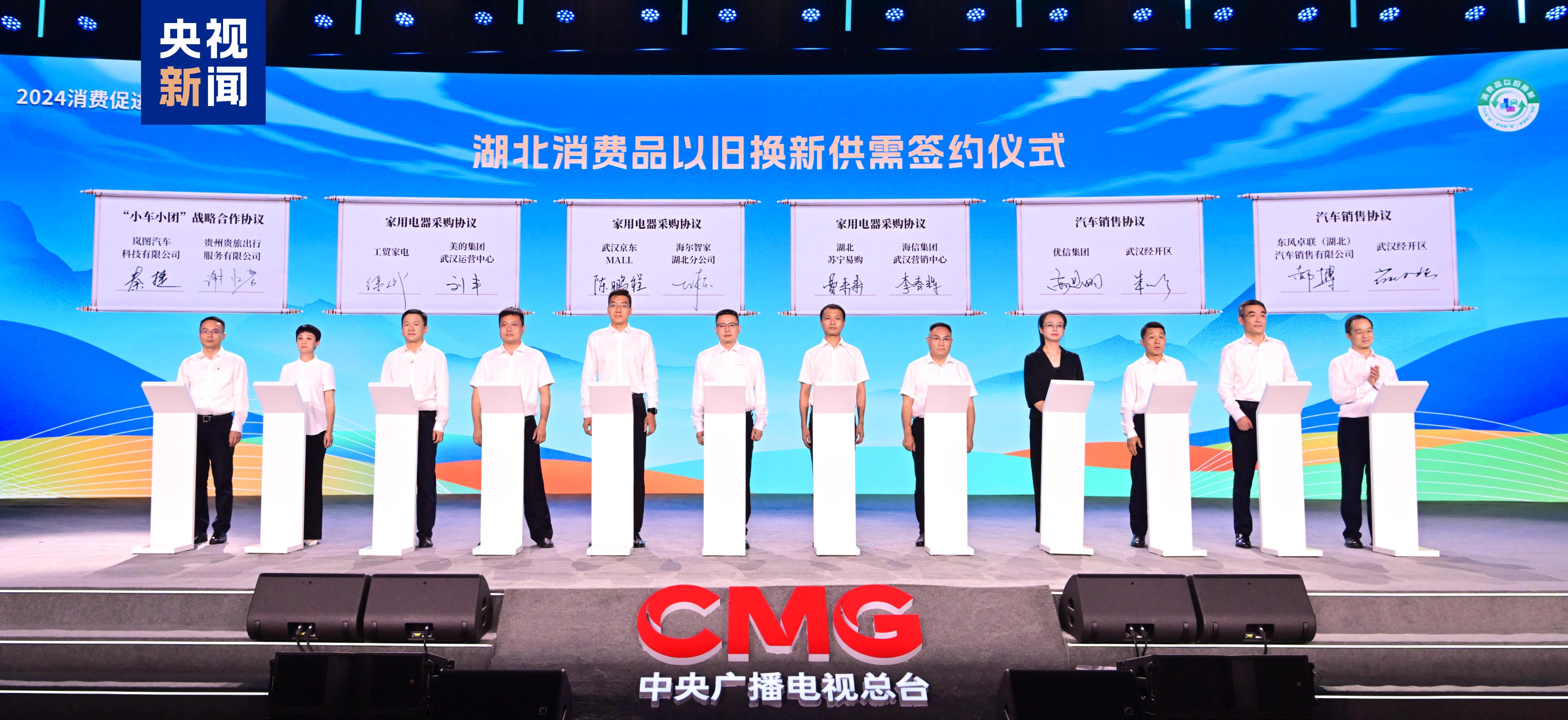 TCL實業、工貿家電、銀聯商務、湖北銀行、懂車帝等五家重點企業及金融平臺代表,現場發布了助力消費品以舊換新惠民舉措。