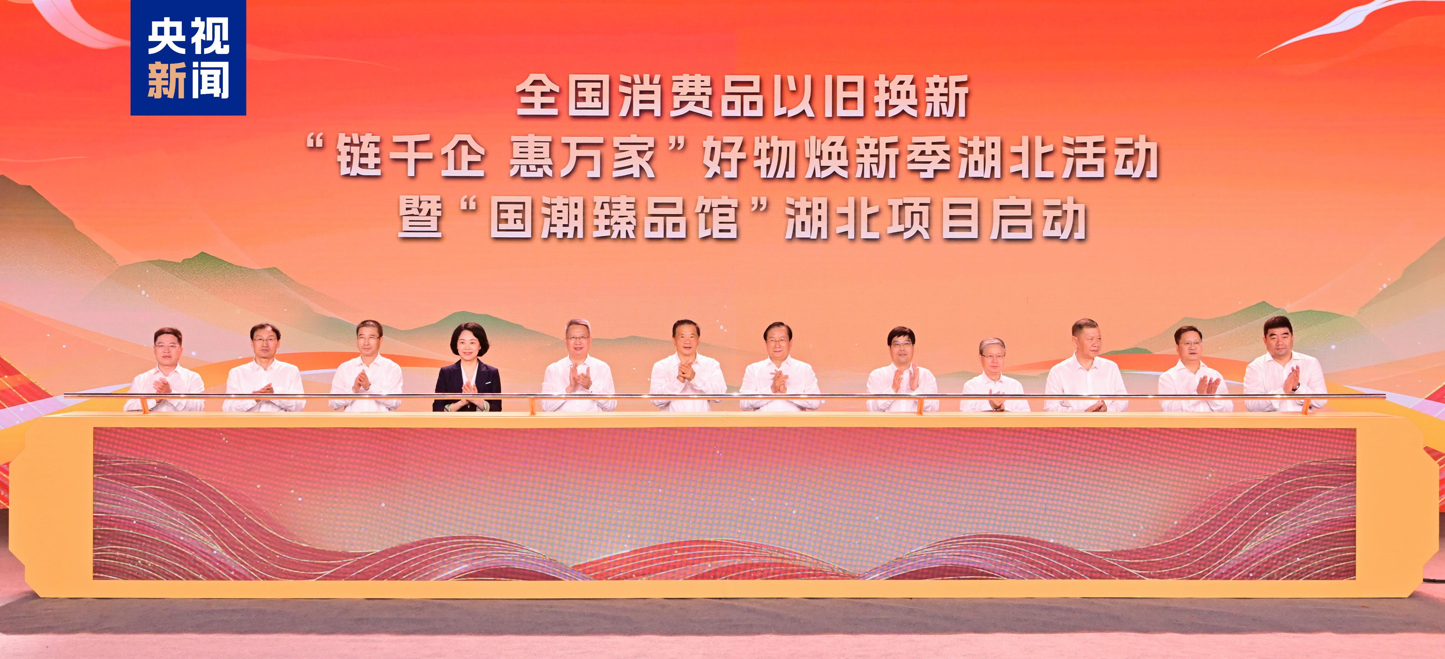 8月28日,由中央廣播電視總臺、湖北省人民政府共同主辦的全國消費品以舊換新“鏈千企 惠萬家”好物煥新季湖北活動暨“國潮臻品館”湖北項目在武漢啟動。