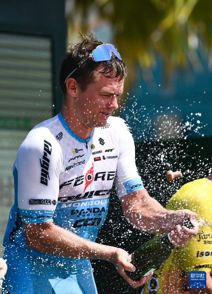 8月28日,賽段冠軍蒙古飛銳快客洲際車隊車手馬丁·拉斯在領獎臺上慶祝。