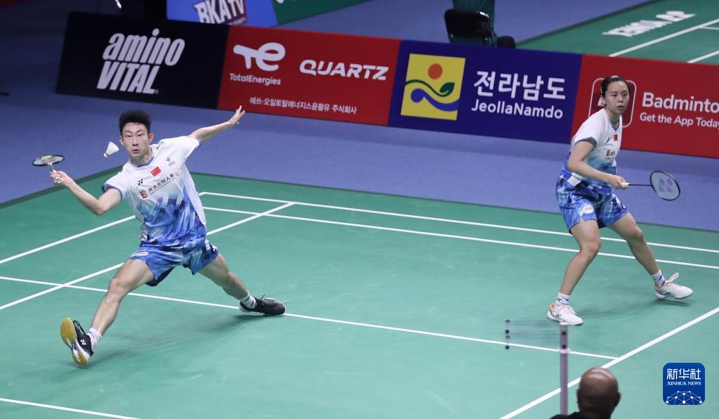 當(dāng)日,在韓國(guó)木浦市舉行的2024年韓國(guó)羽毛球公開(kāi)賽混雙首輪比賽中,中國(guó)組合周志宏/楊嘉怡2比0戰(zhàn)勝丹麥組合韋斯特高/布施,晉級(jí)次輪。