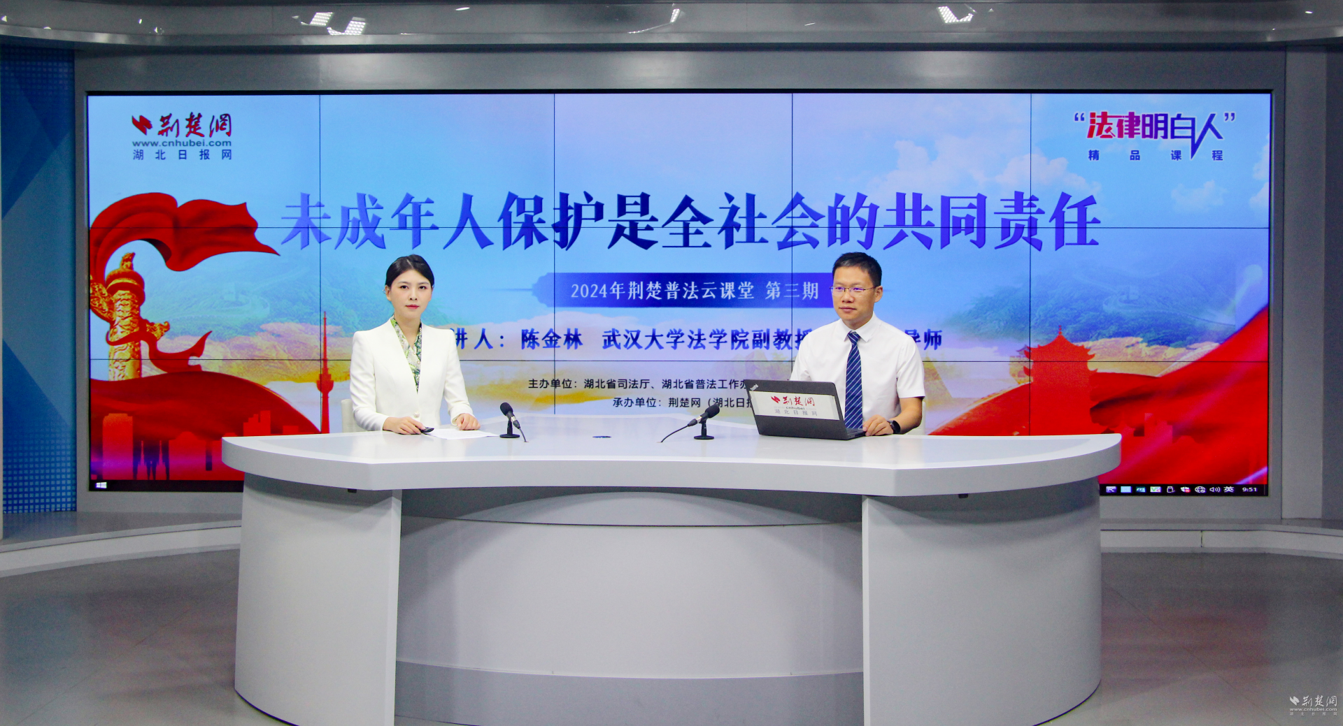 荊楚網(湖北日報網)訊(記者肖慧婷)荊楚云課堂,名師來普法。8月29日上午,由湖北省司法廳、湖北省普法辦、共青團湖北省委主辦,荊楚網(湖北日報網)承辦的2024年荊楚普法云課堂第三期在湖北日報5G演播室開講。線上共有64萬人次觀看了直播。