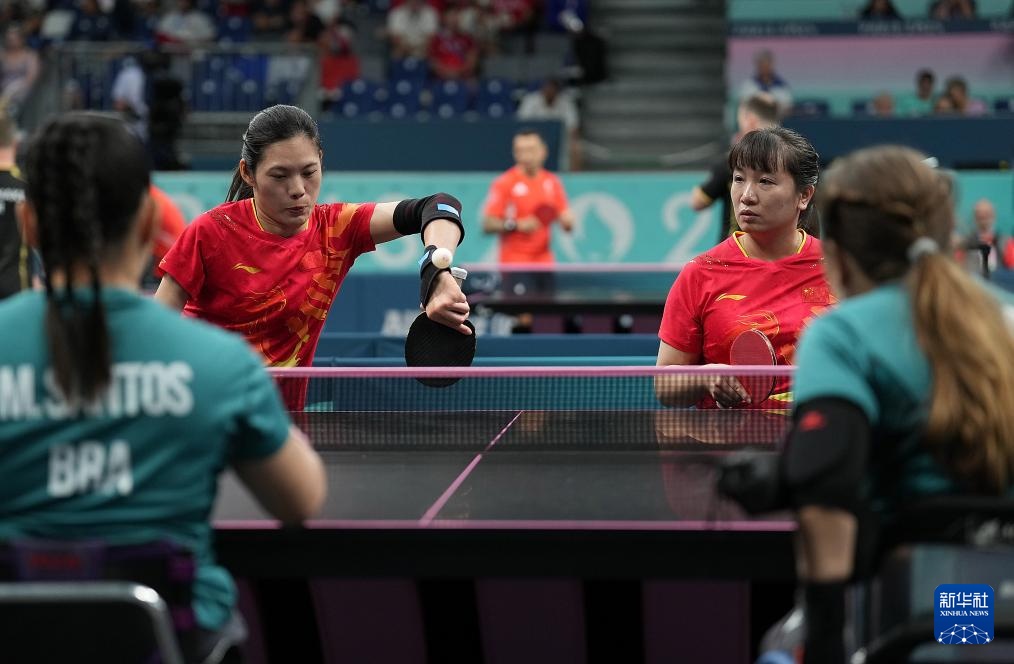 8月29日,中國組合劉靜(后左)/薛娟(后右)在女雙5級四分之一決賽中。她們3比0戰(zhàn)勝巴西組合阿澤維多/桑托斯,晉級半決賽。