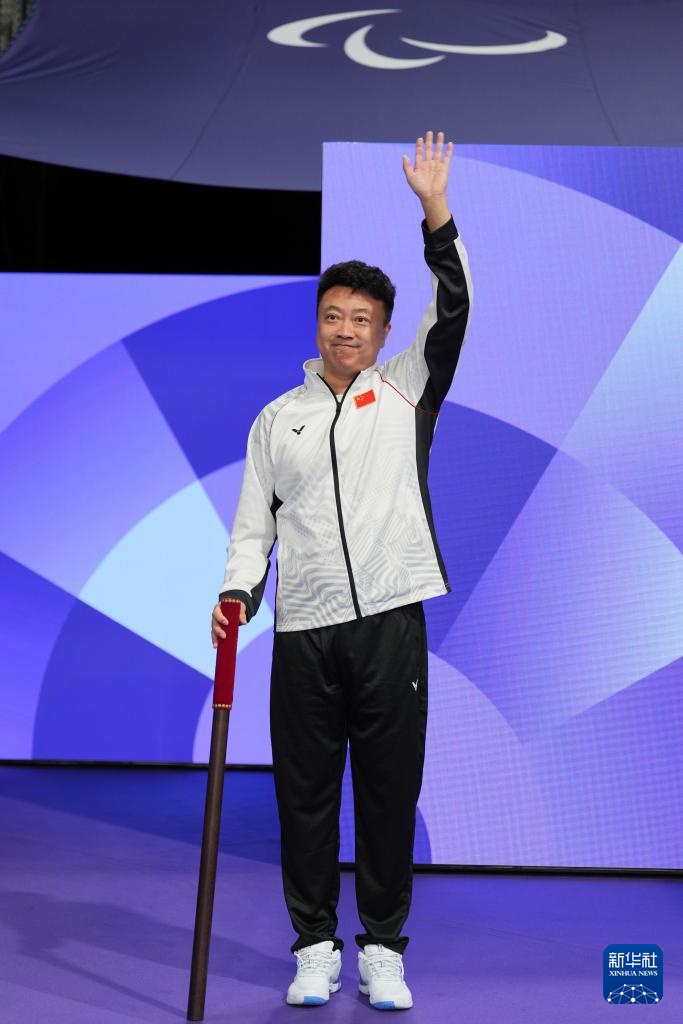 當日,中國國家殘疾人羽毛球隊總教練董炯在法國巴黎拉夏貝爾門體育館出席巴黎殘奧會羽毛球比賽開球儀式。