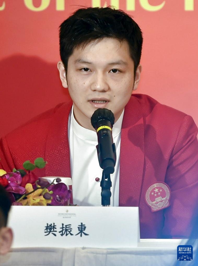 8月29日,乒乓球運(yùn)動(dòng)員樊振東在媒體見(jiàn)面會(huì)上回答記者提問(wèn)。