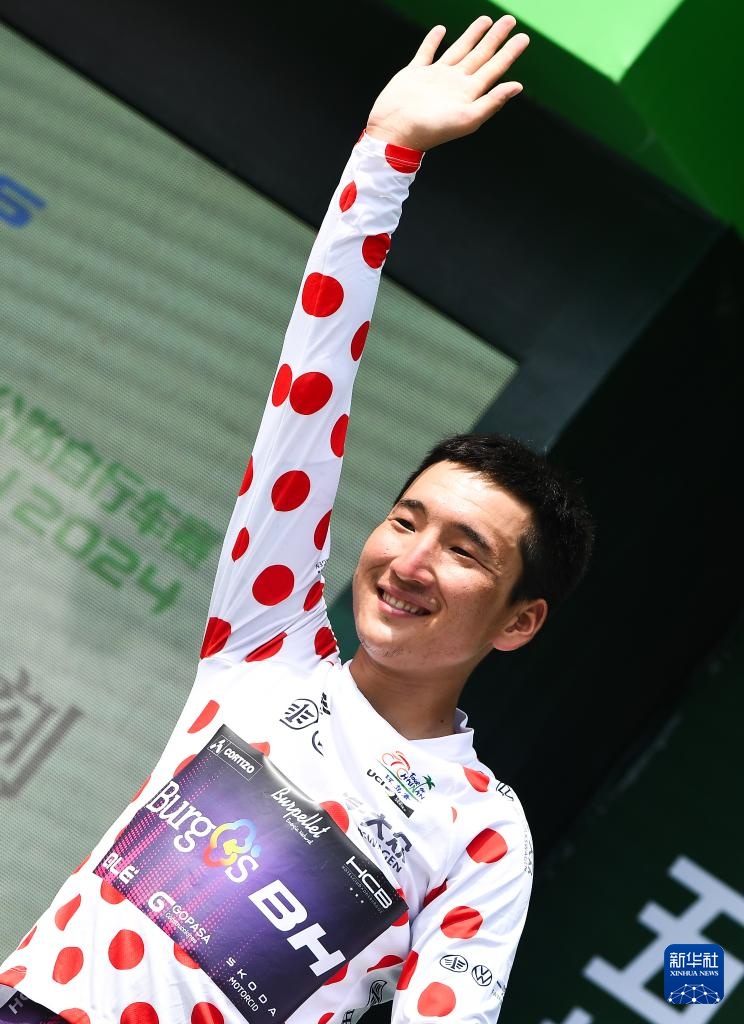 8月29日,西班牙布爾戈斯-BH車隊(duì)車手賽因巴雅爾獲得代表爬坡總積分第一名的圓點(diǎn)衫。