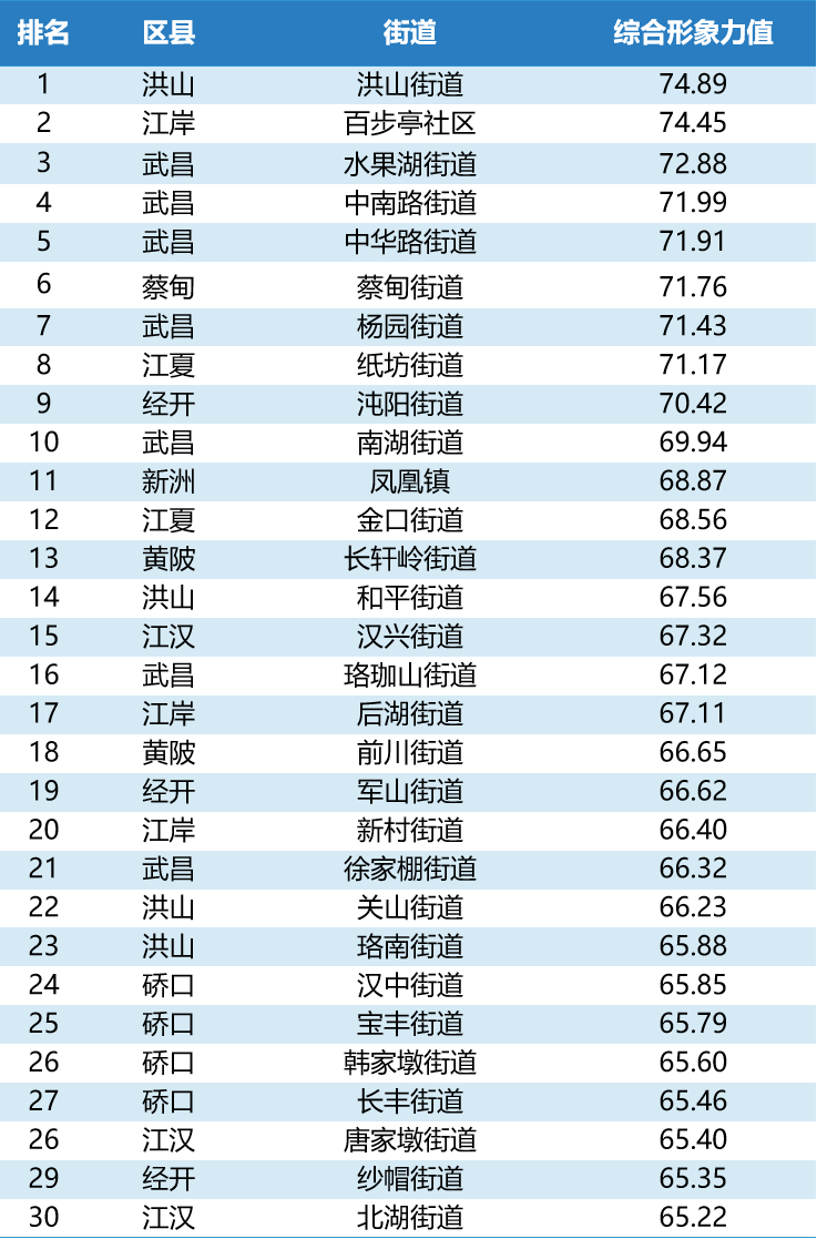 數(shù)據(jù)分析:武昌區(qū)7個(gè)街道入榜TOP30