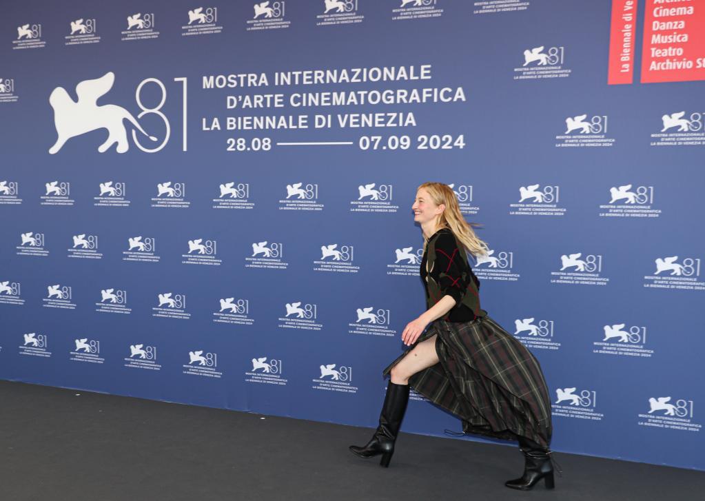 8月29日,在意大利威尼斯舉行的第81屆威尼斯國際電影節上,主競賽單元影片《瑪麗亞》演員阿爾巴·羅爾瓦赫爾亮相拍照式。新華社記者 李京 攝