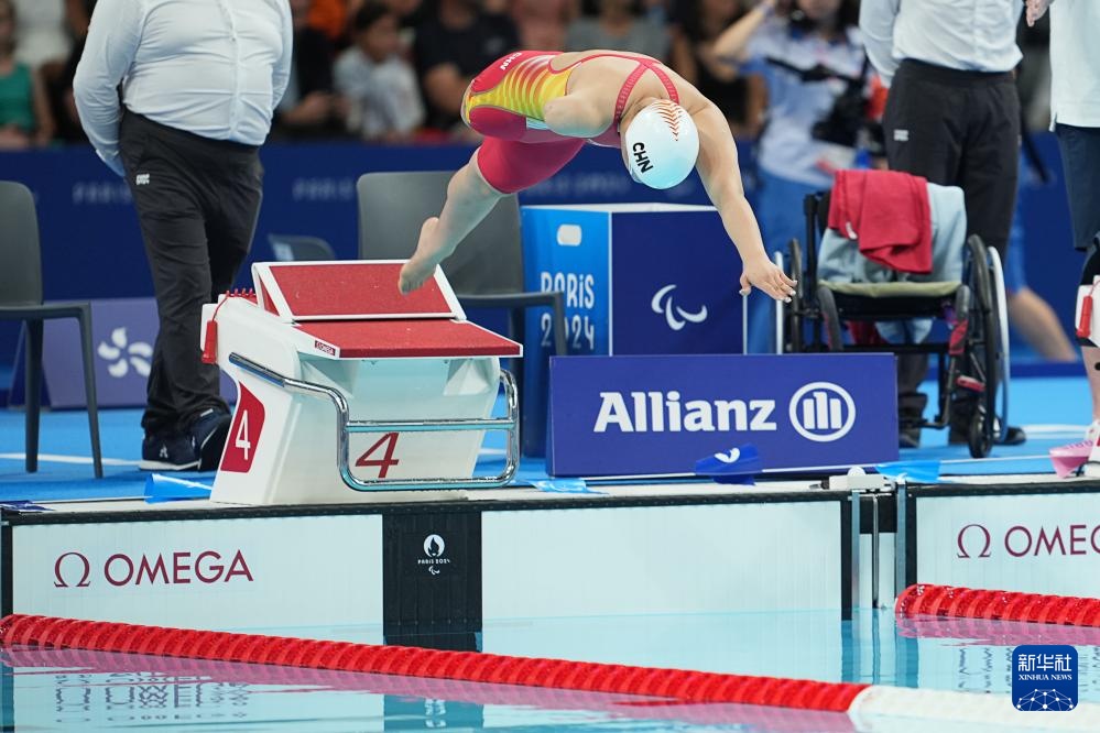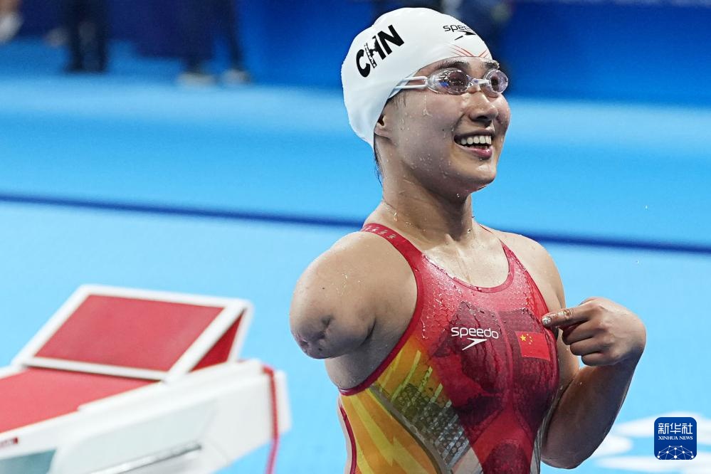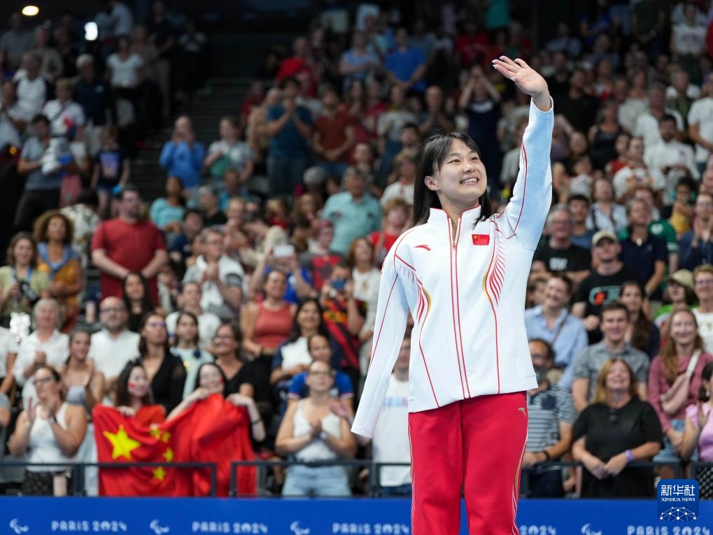 當(dāng)日,在巴黎殘奧會女子50米自由泳S6級決賽中,中國選手蔣裕燕以32秒59的成績獲得冠軍。