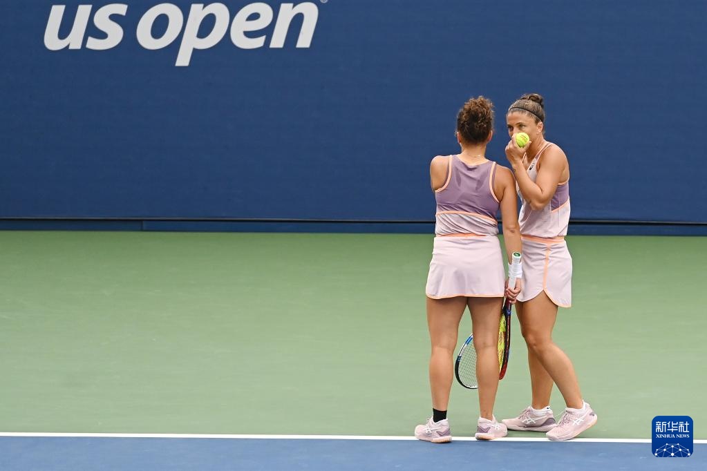8月29日,莎拉·埃拉尼(右)/雅絲明·保利尼在比賽中商討戰術。新華社記者 李睿 攝