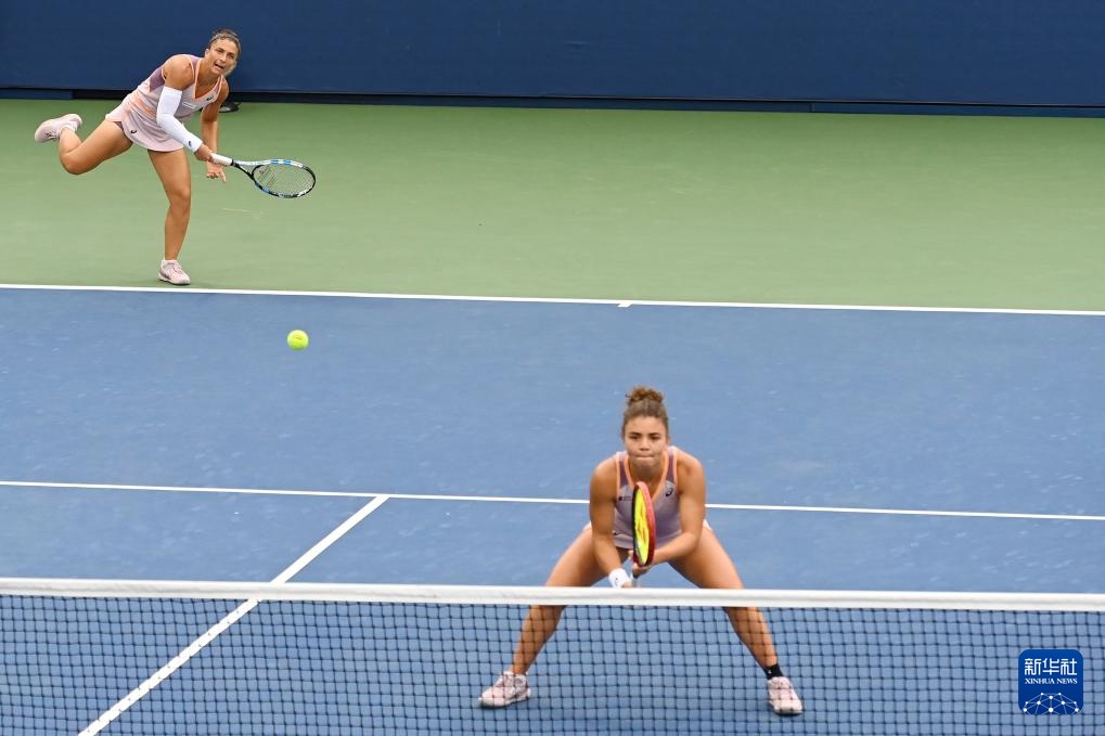 8月29日,莎拉·埃拉尼(上)/雅絲明·保利尼在比賽中。新華社記者 李睿 攝