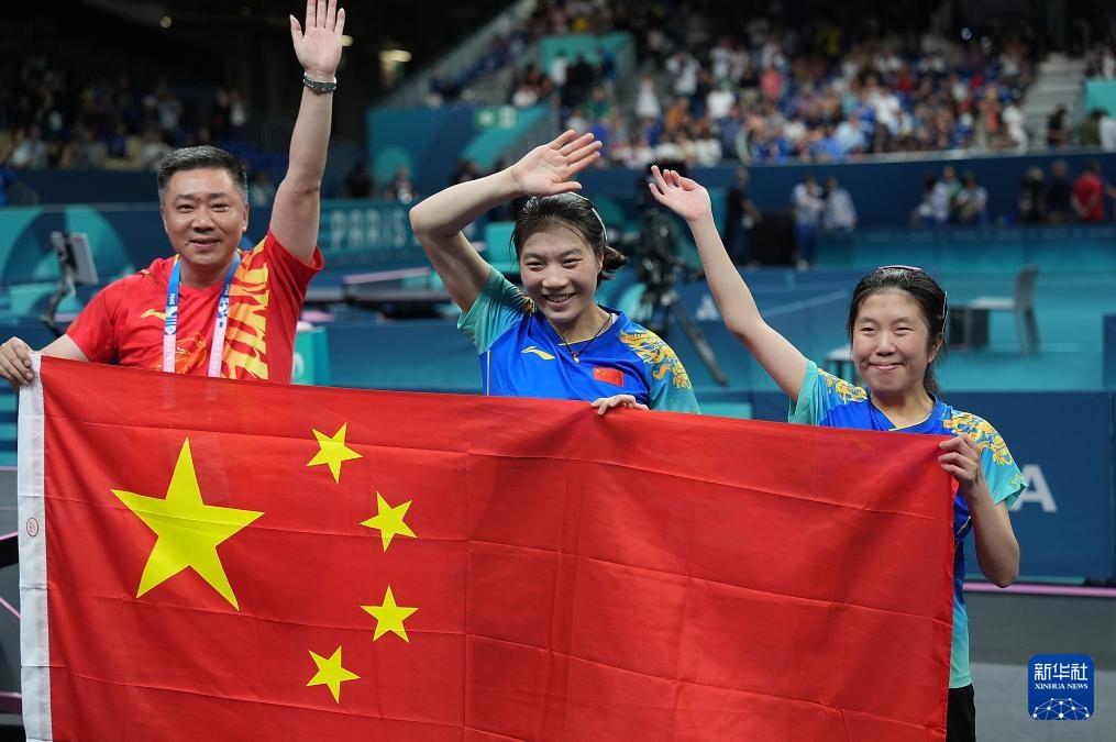 當(dāng)日,在巴黎奧運(yùn)會(huì)乒乓球女雙14級(jí)決賽中,中國(guó)組合黃文娟/金芋成3比1戰(zhàn)勝德國(guó)組合斯特凡妮·格雷貝/尤利亞妮·沃爾夫,獲得冠軍。