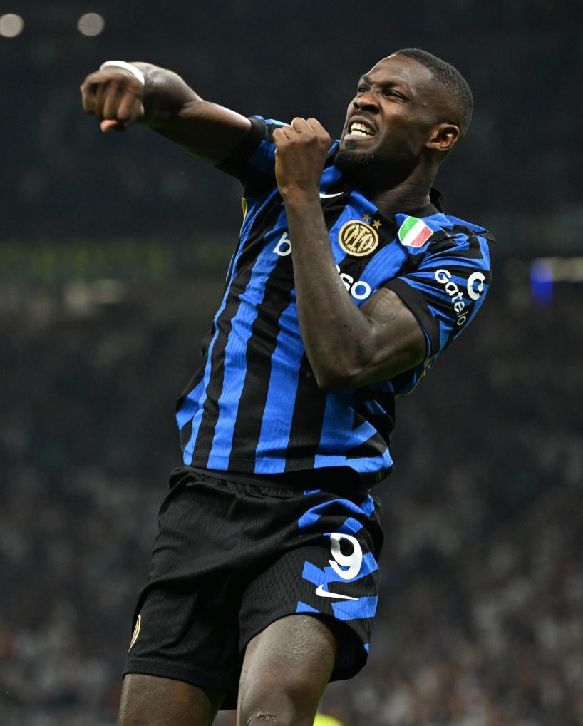 8月30日,國際米蘭隊球員圖拉姆慶祝進球。新華社發(阿爾貝托·林格利亞攝)