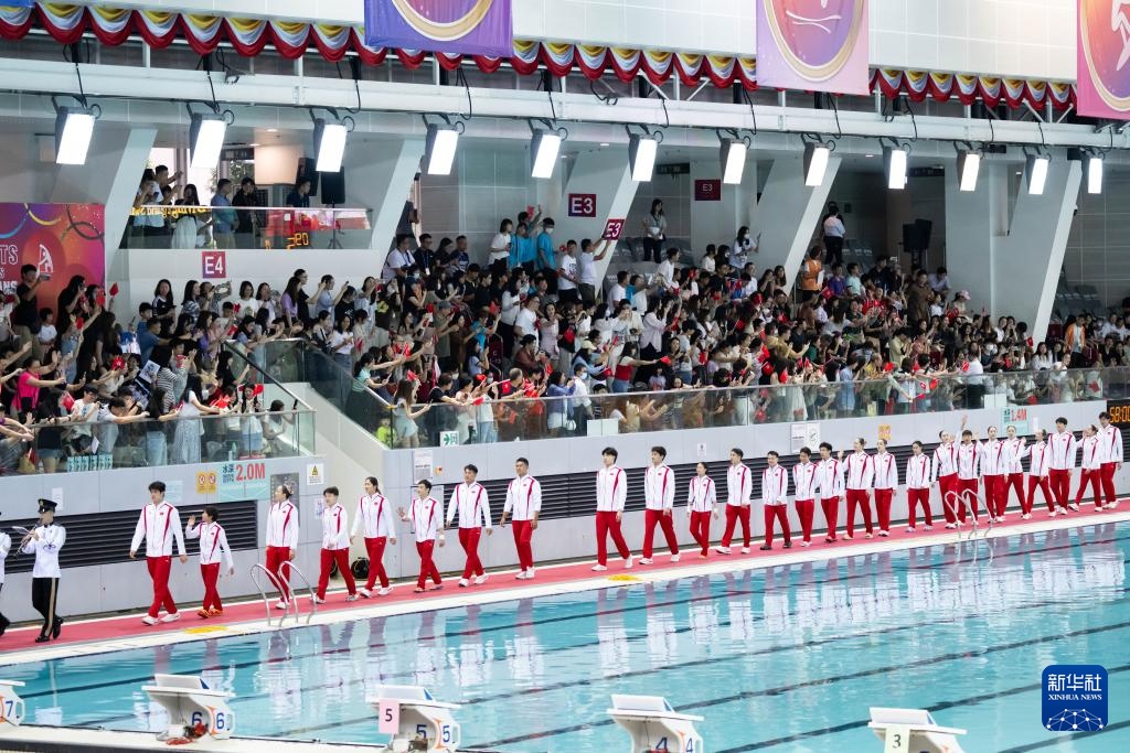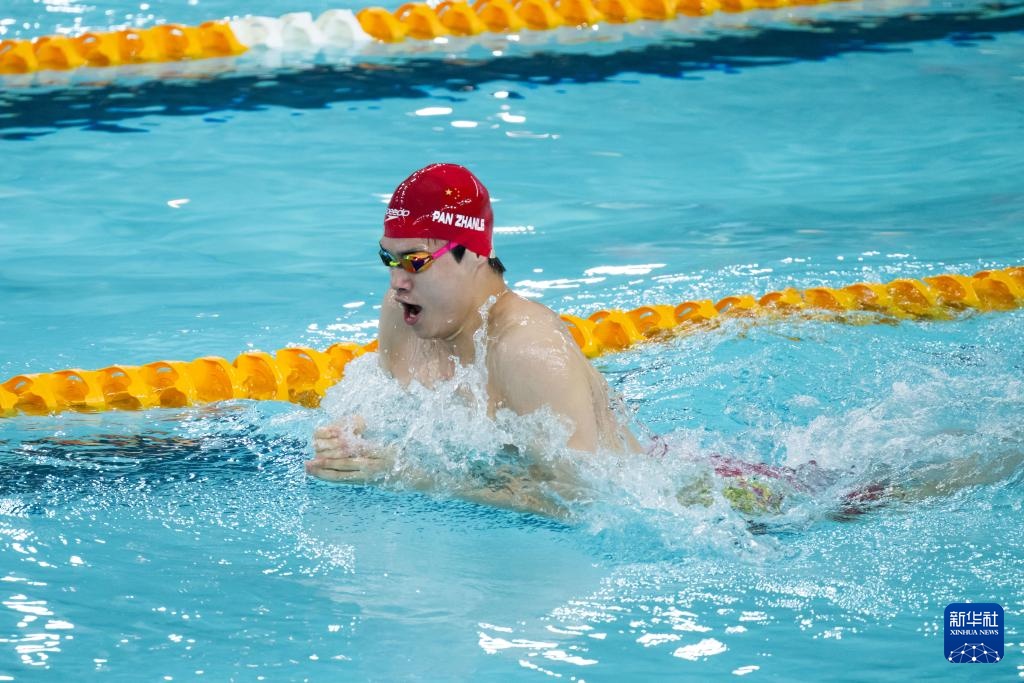 8月31日,游泳選手潘展樂進行表演。新華社記者 盧炳輝 攝