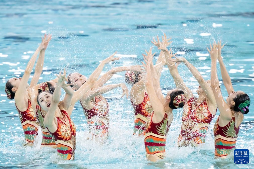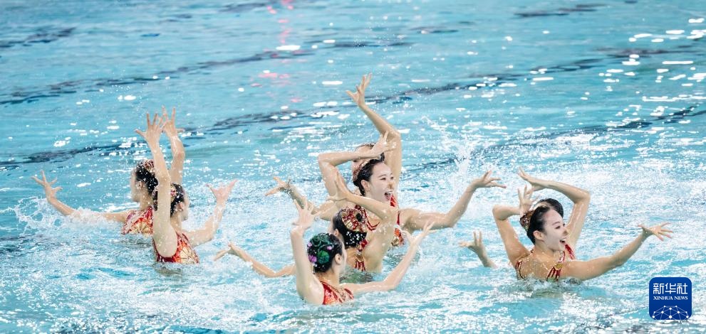 8月31日,花樣游泳隊選手進行表演。新華社記者 盧炳輝 攝